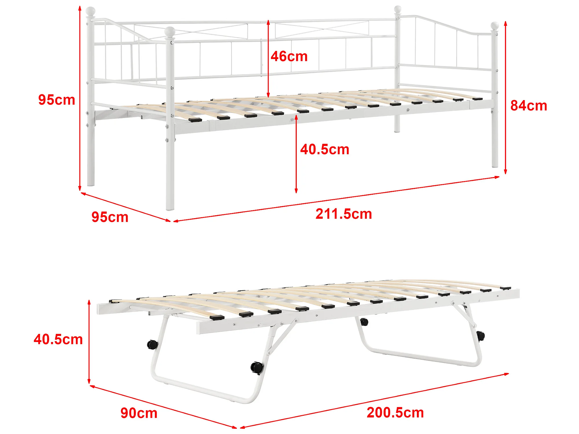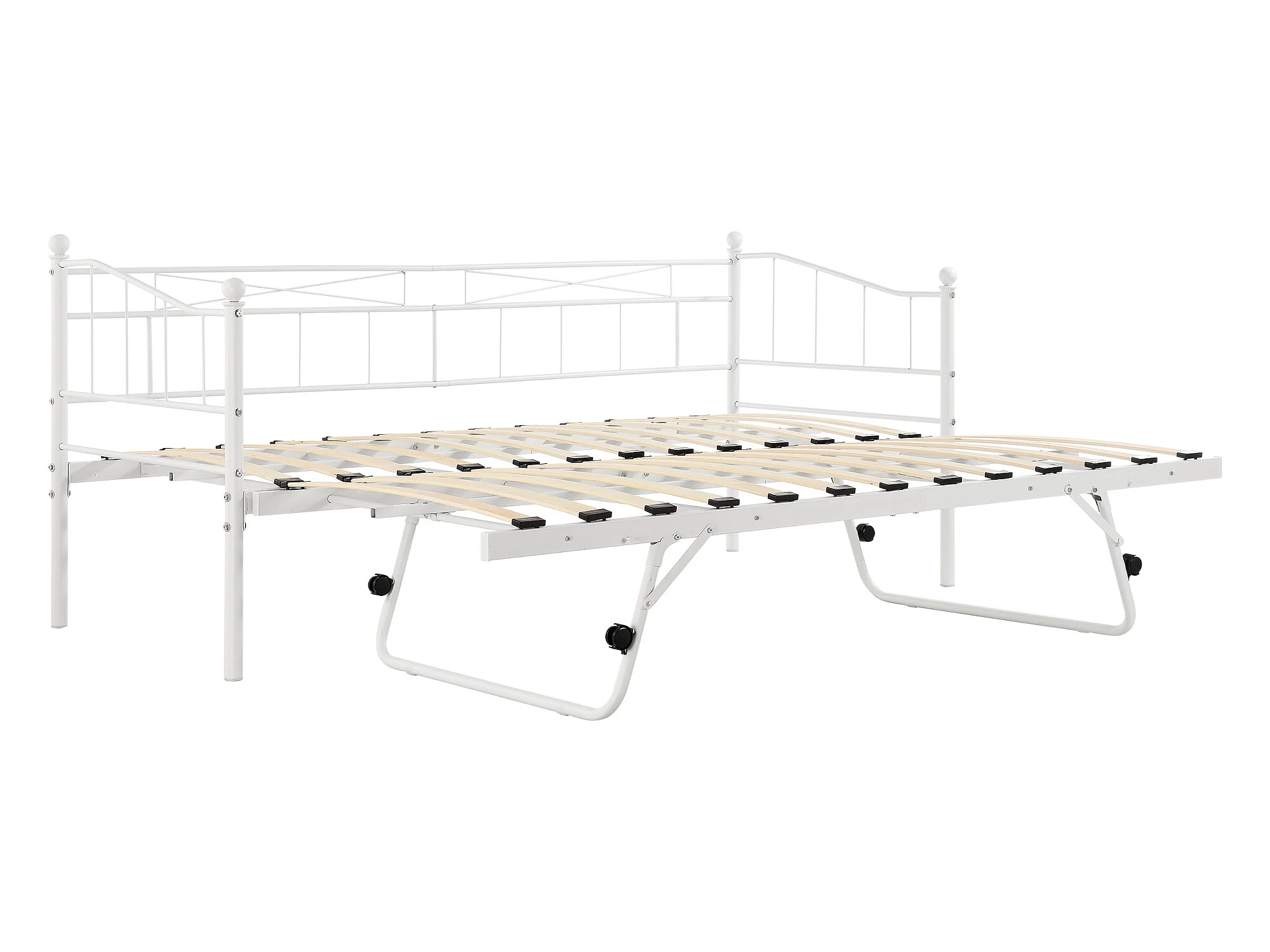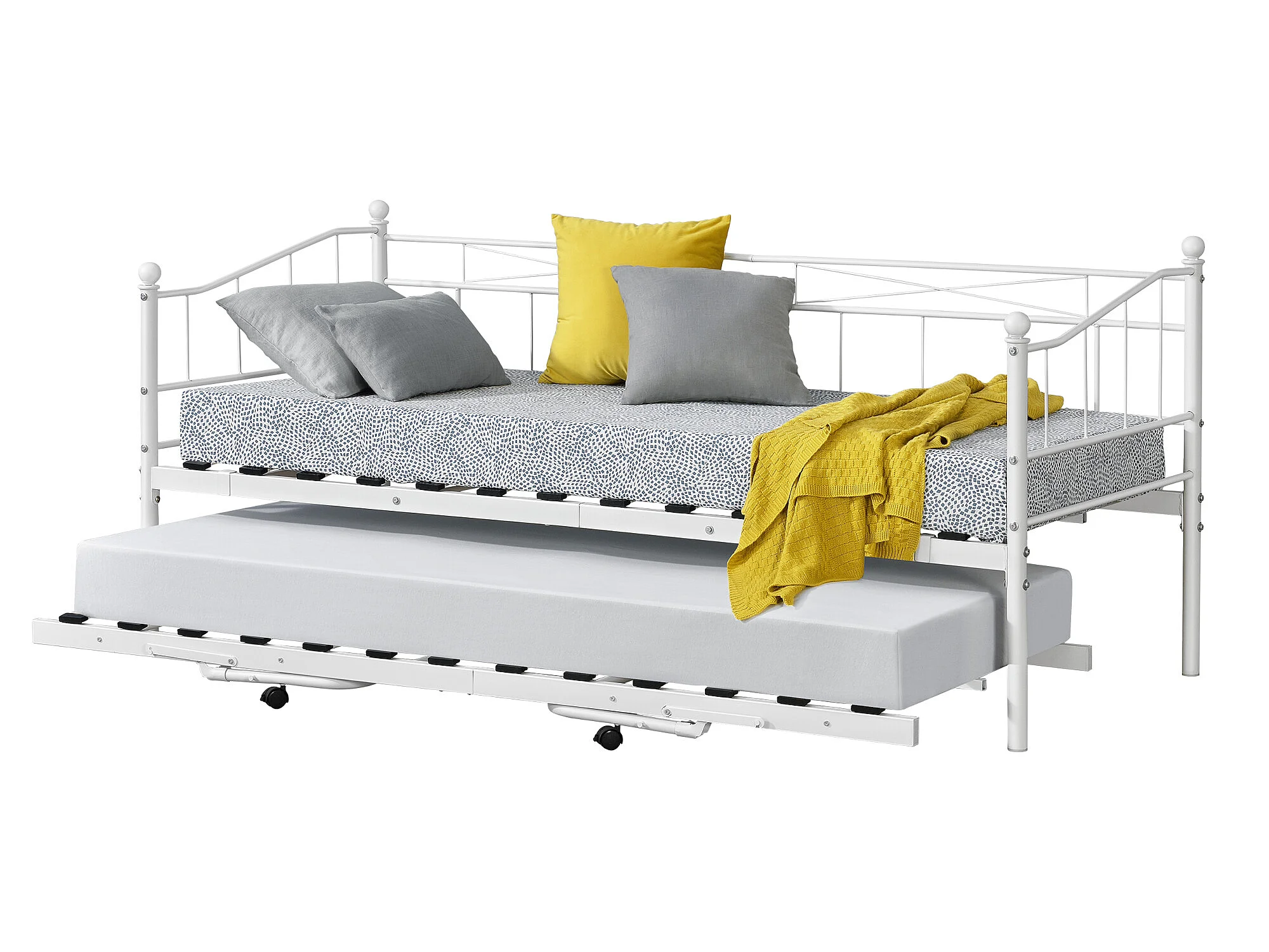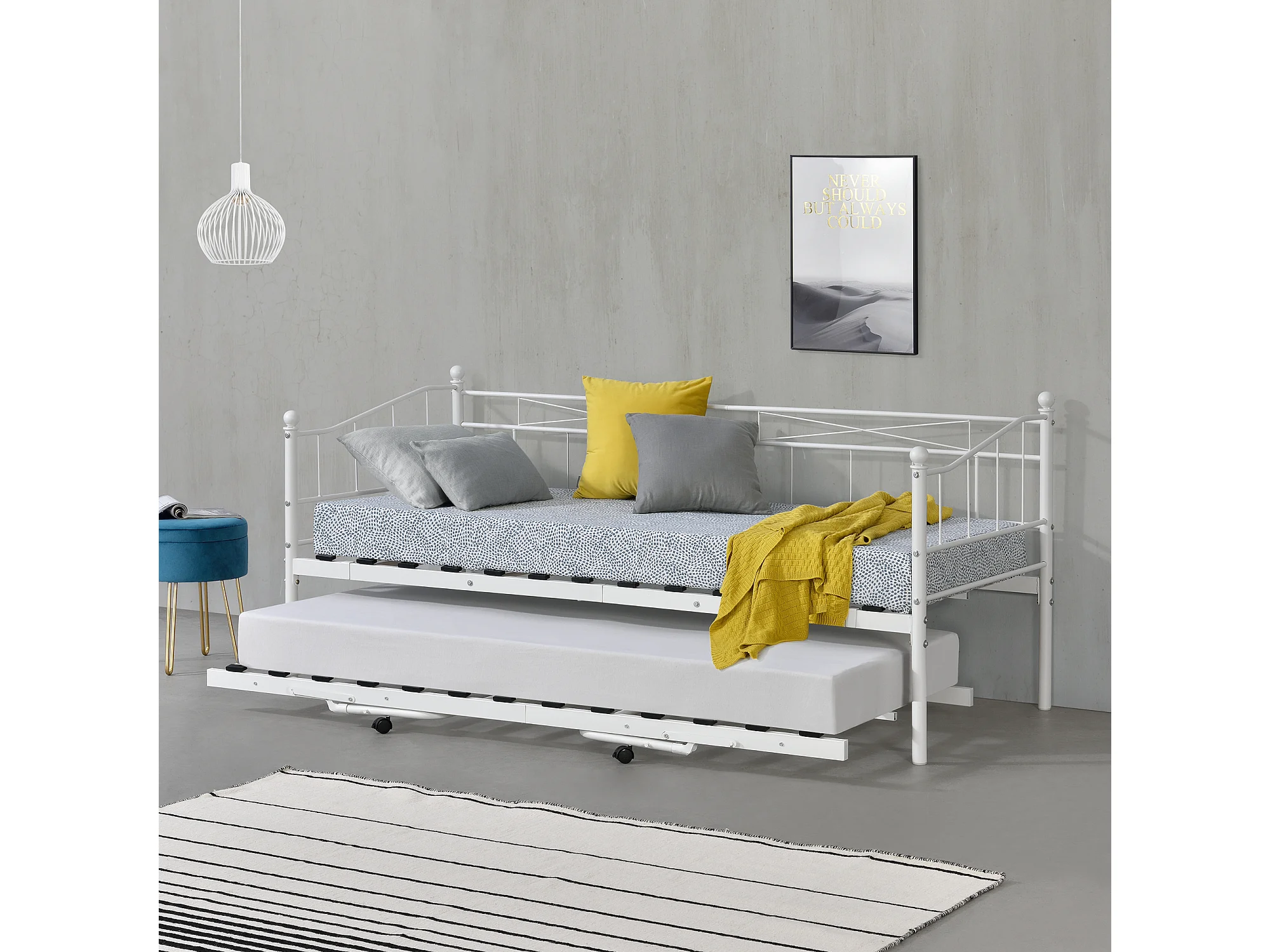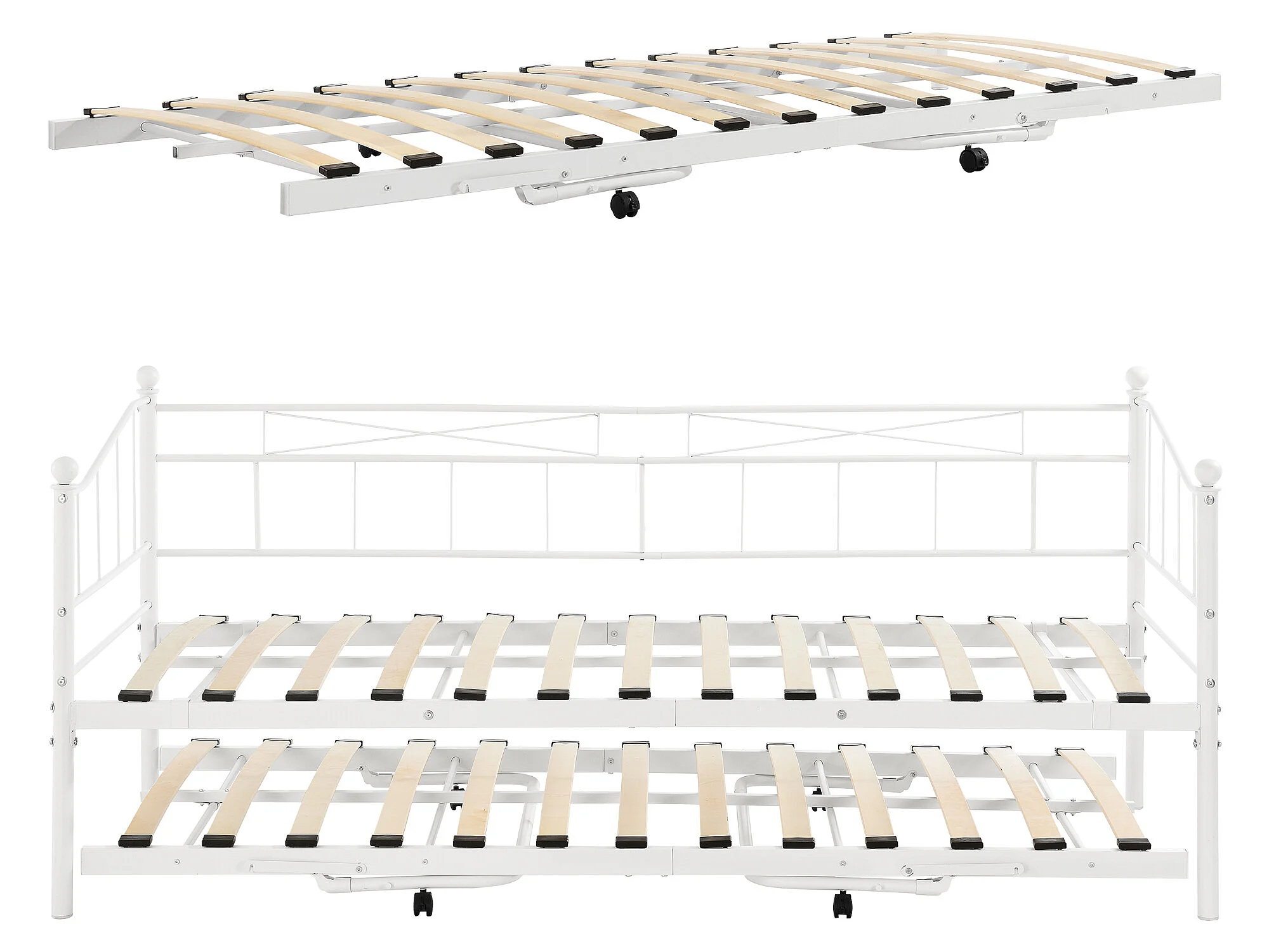 Cadre de Lit Gigogne en Métal Sommier à Lattes Acier Laqué 90 x 200 cm Blanc Mat [en.casa]