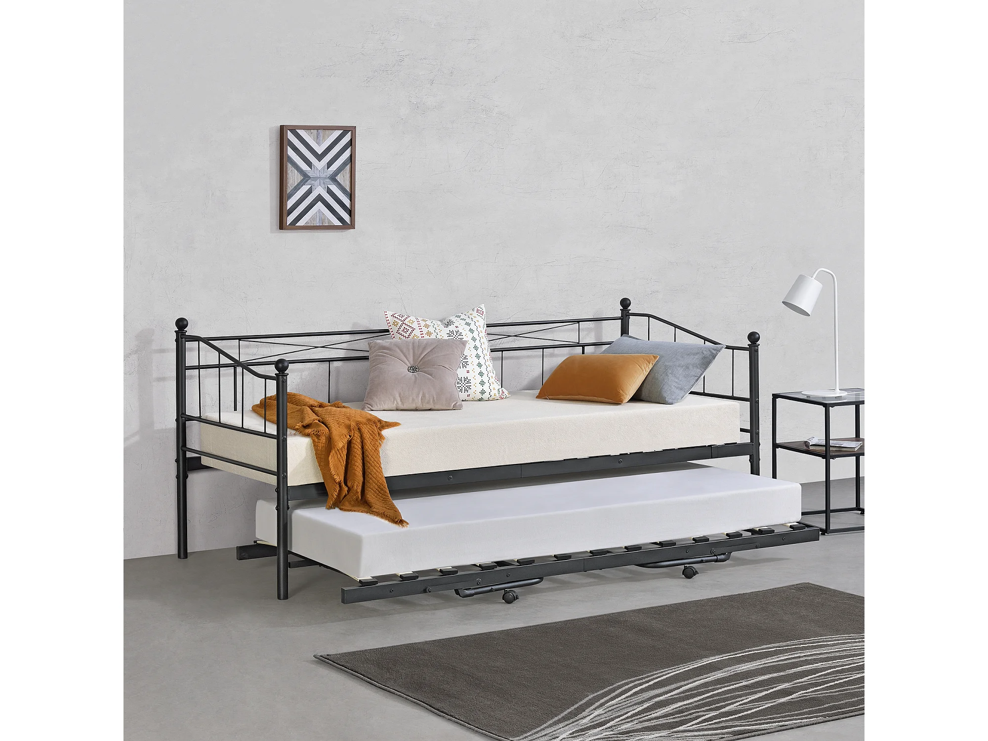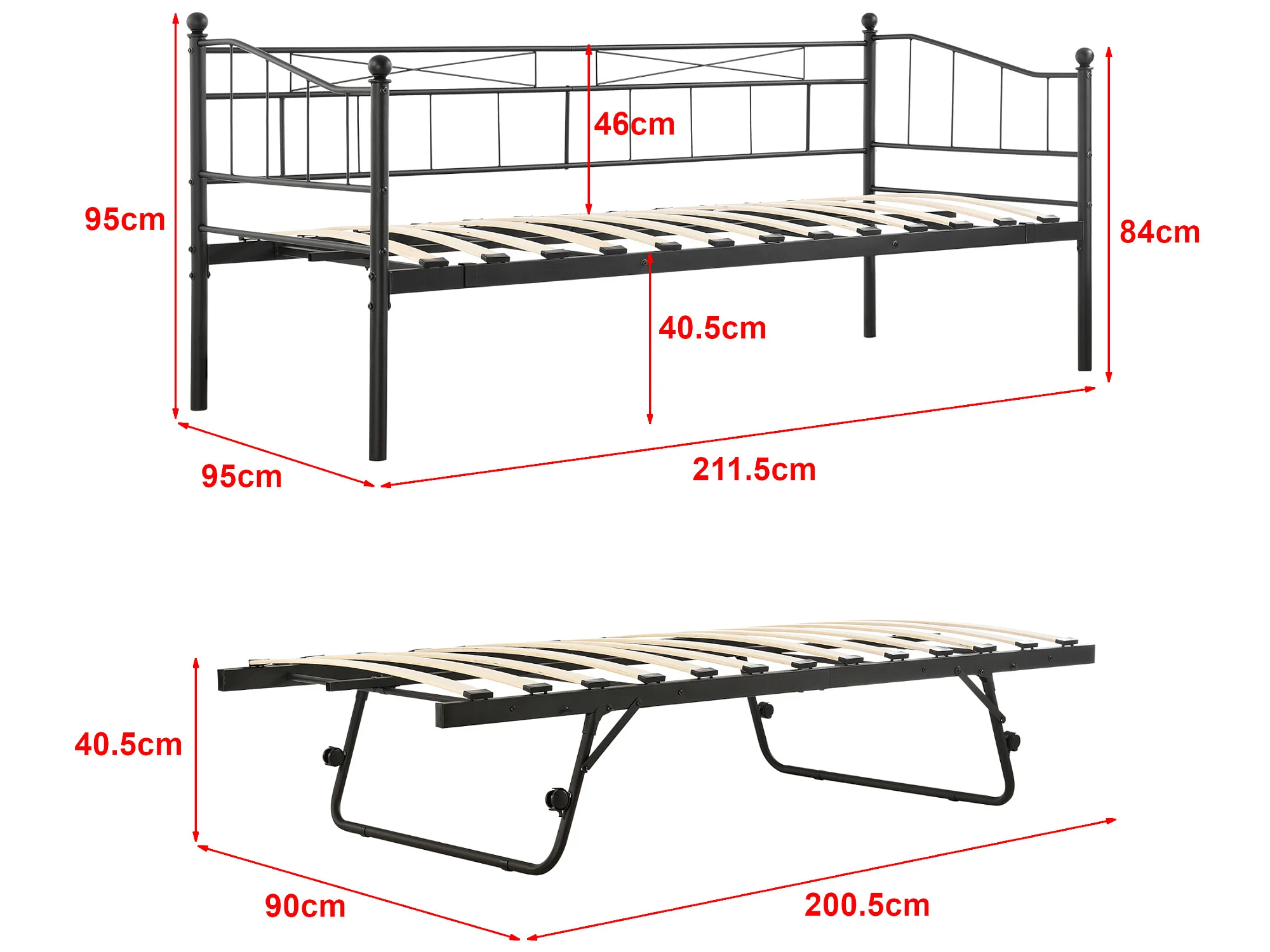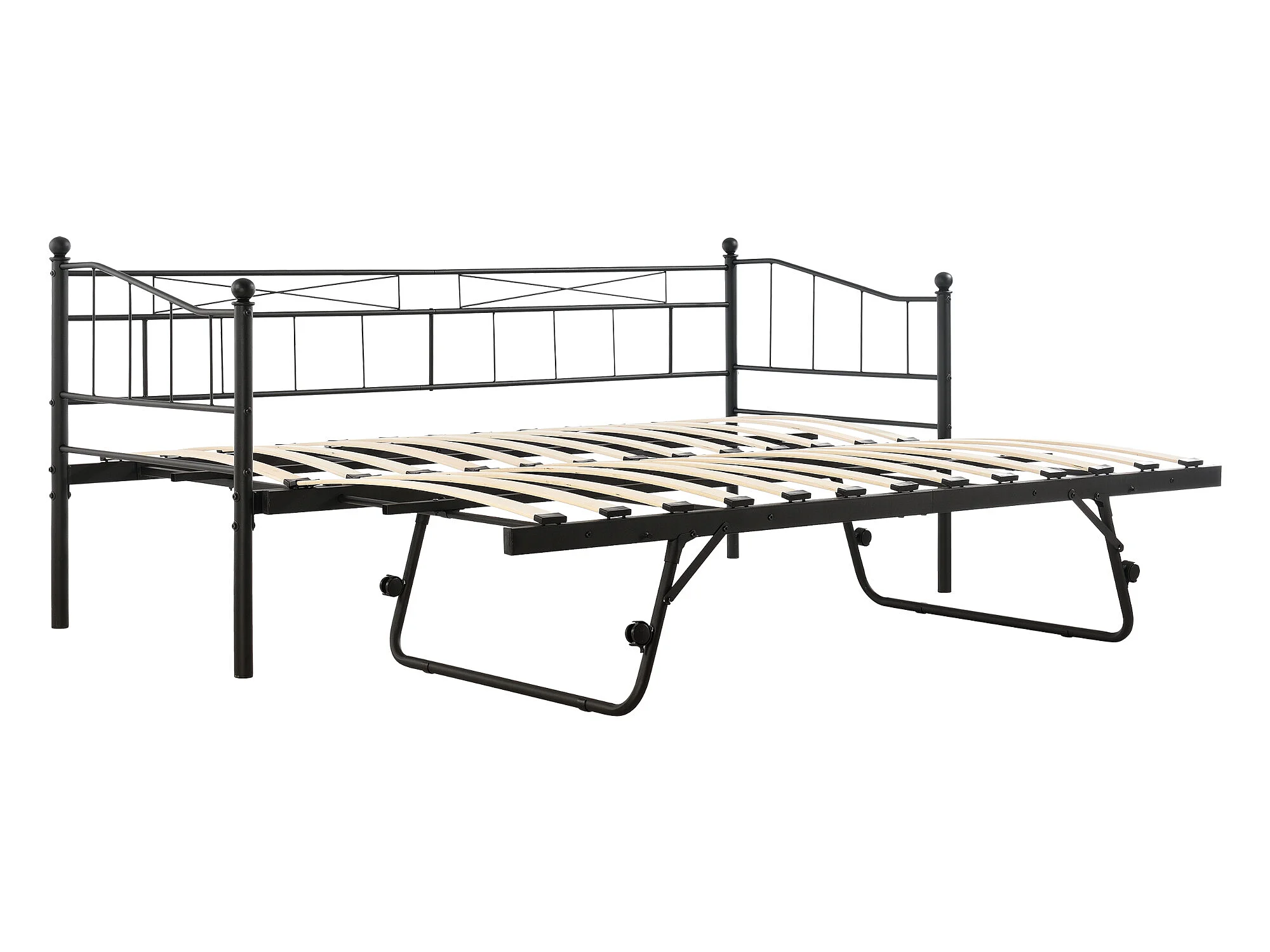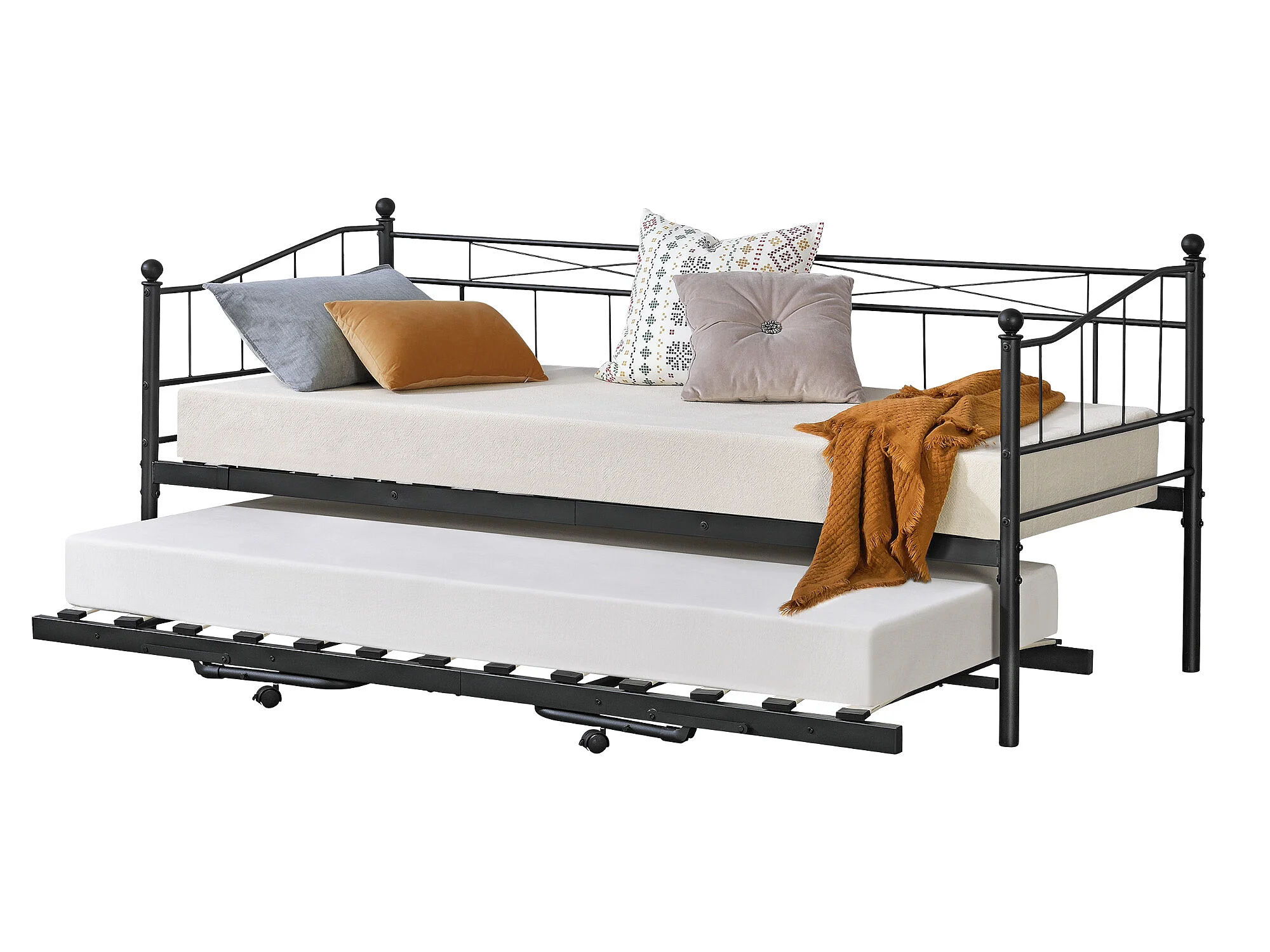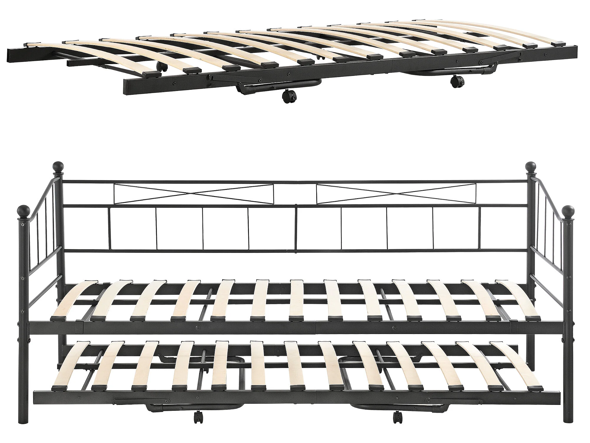 Cadre de Lit Gigogne en Métal Sommier à Lattes Acier Laqué 90 x 200 cm Noir Mat [en.casa]