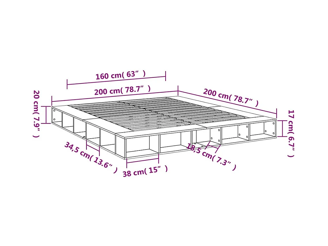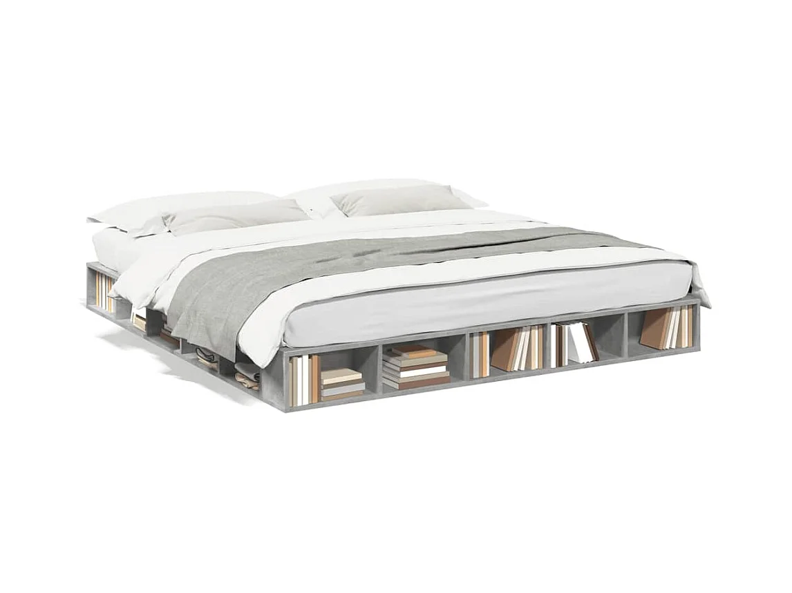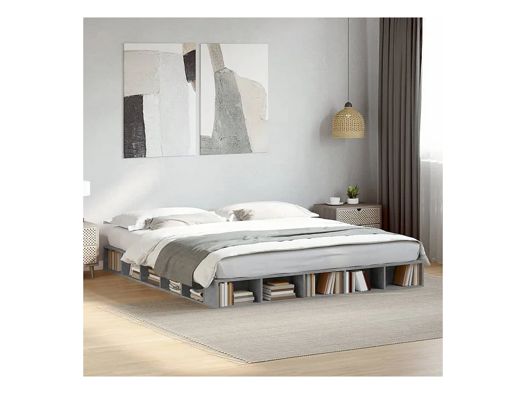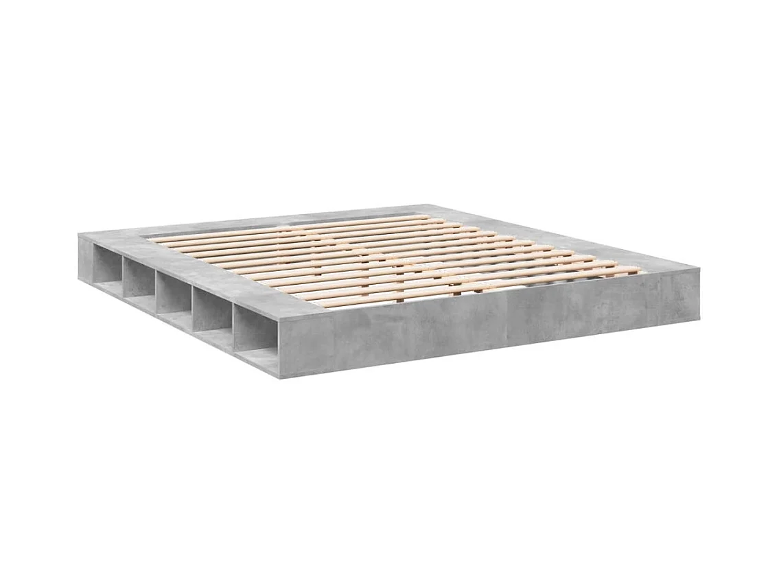Cadre de lit gris béton 200x200 cm bois d'ingénierie
