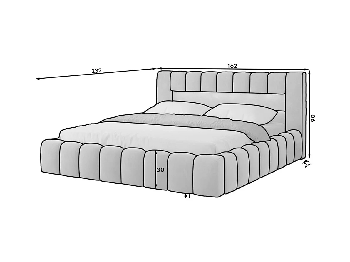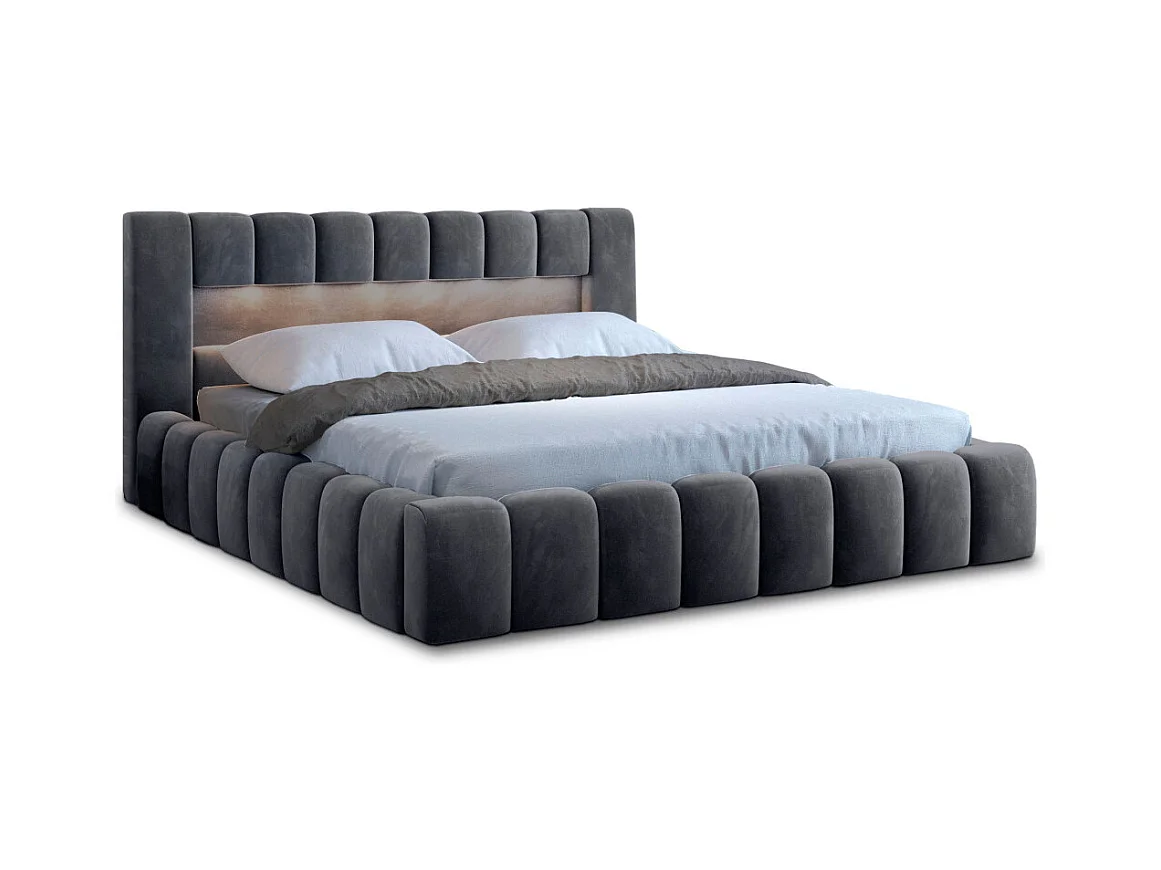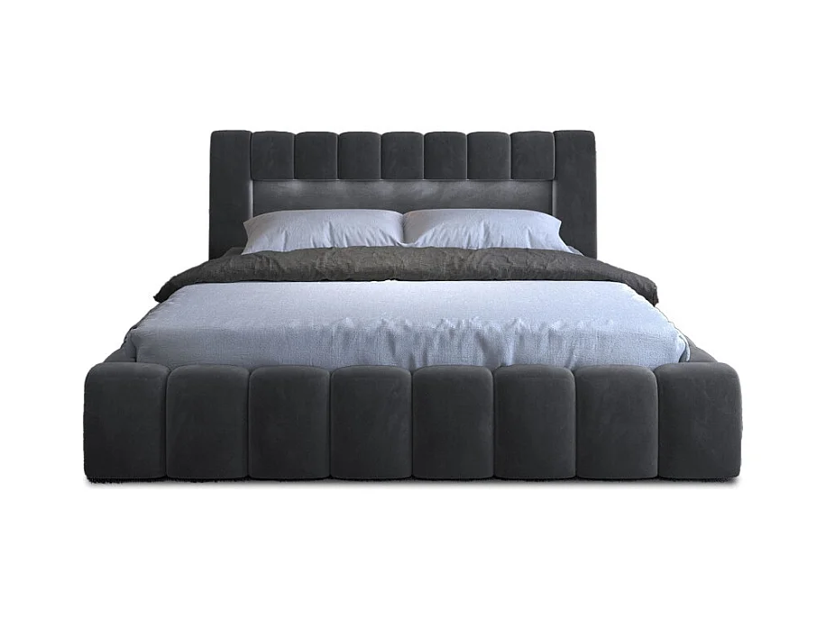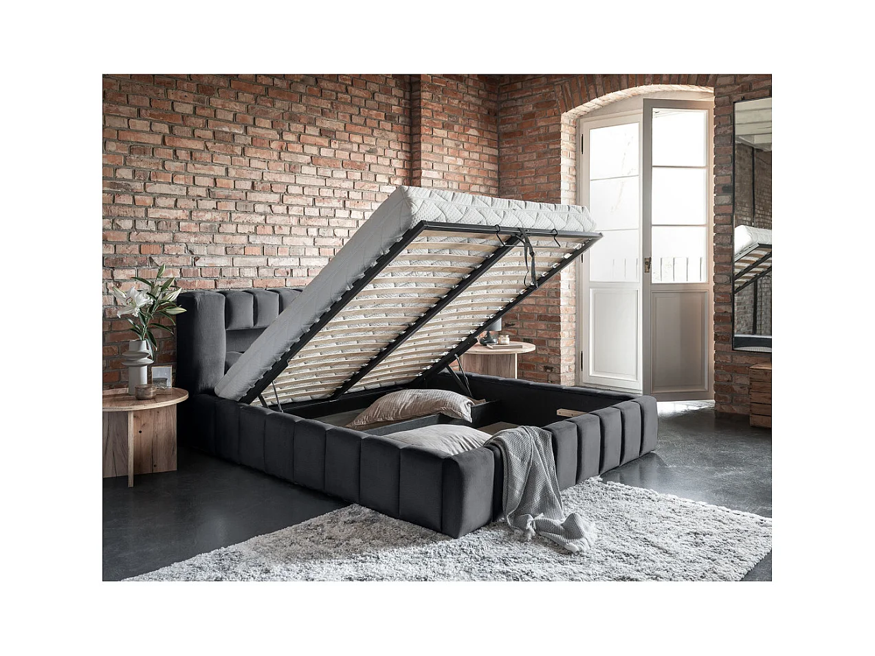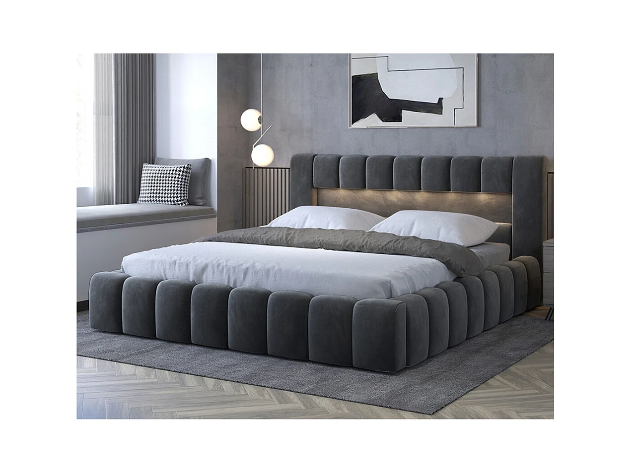Cadre de lit KENZA avec coffre et éclairage LED en velours - Gris anthracite