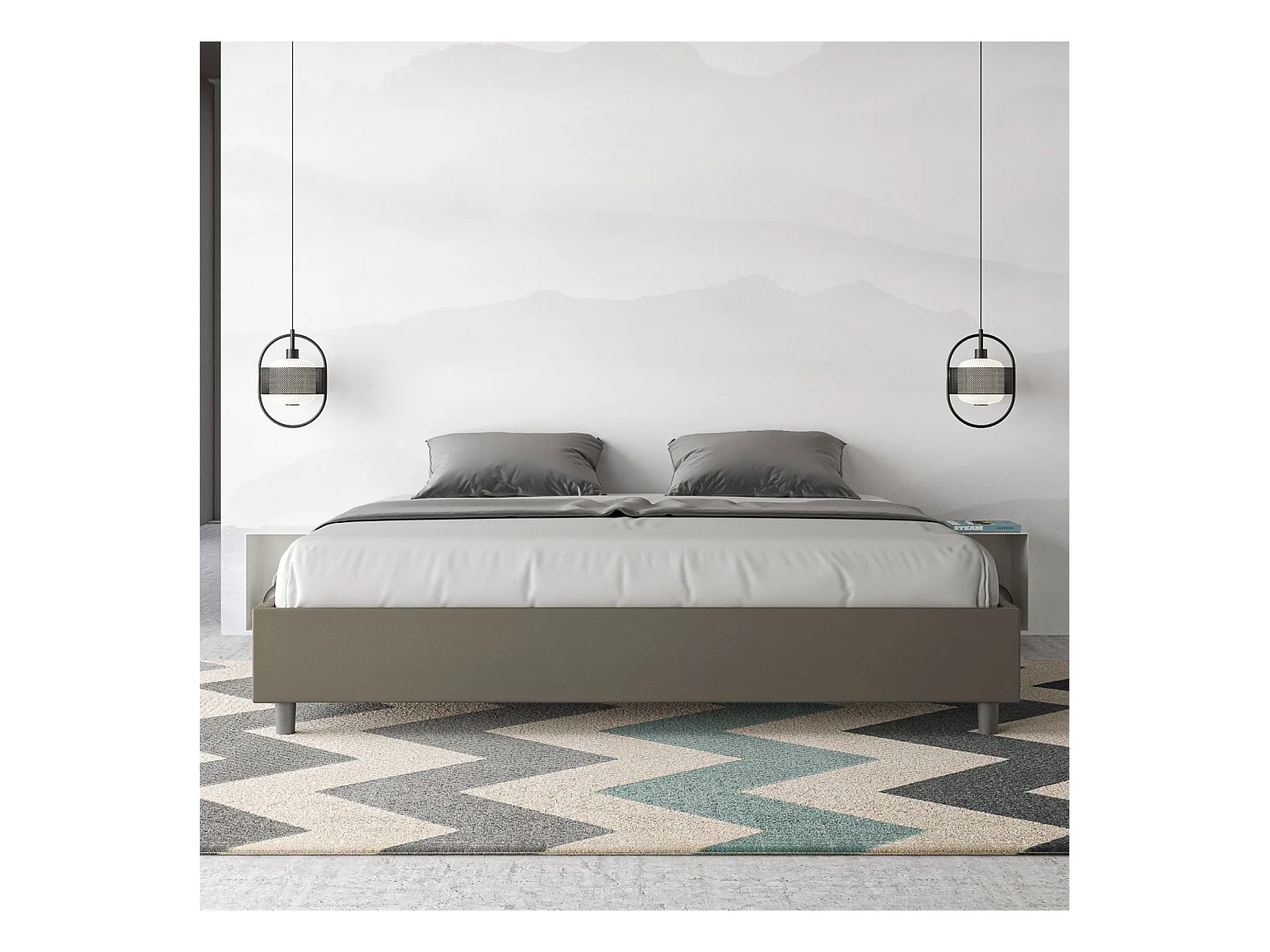 Lit avec sommier rembourrée 180x190 similicuir cappuccino Azelia