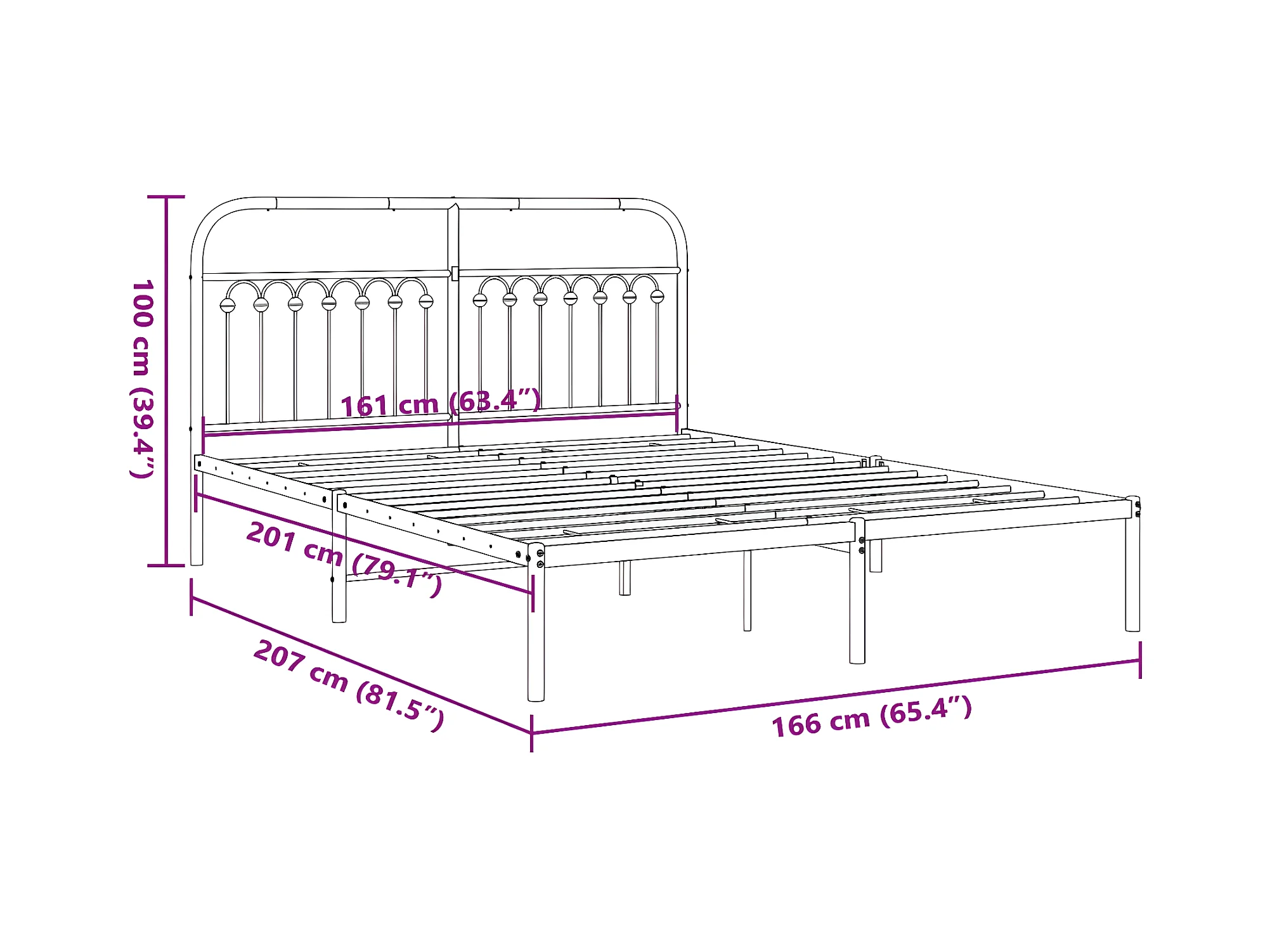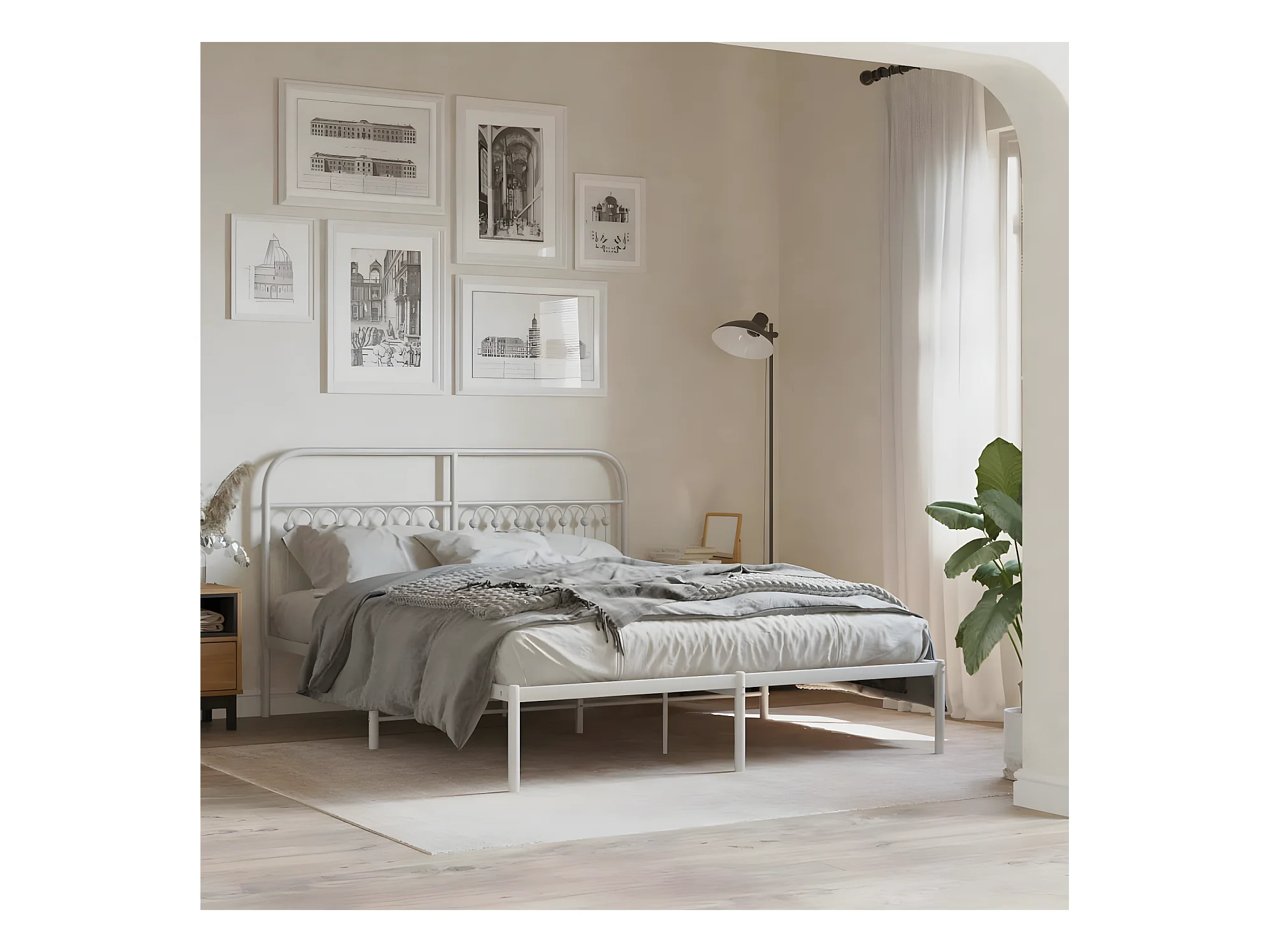 Cadre de lit métal avec tête de lit blanc 160x200 cm