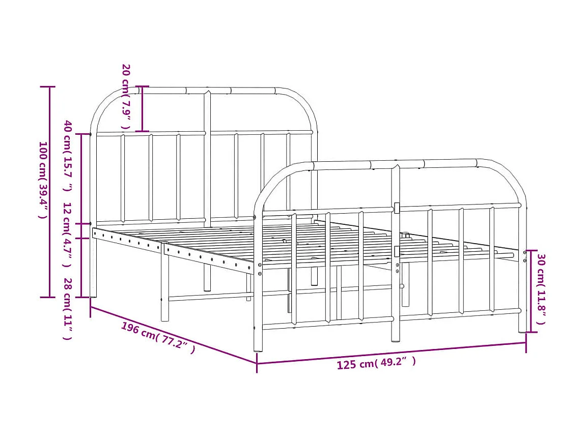 Cadre de lit métal avec tête de lit-pied de lit blanc 120x190