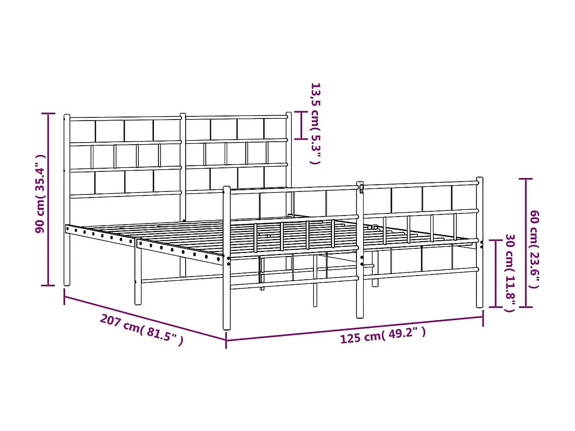 Cadre de lit métal avec tête de lit-pied de lit blanc 120x200