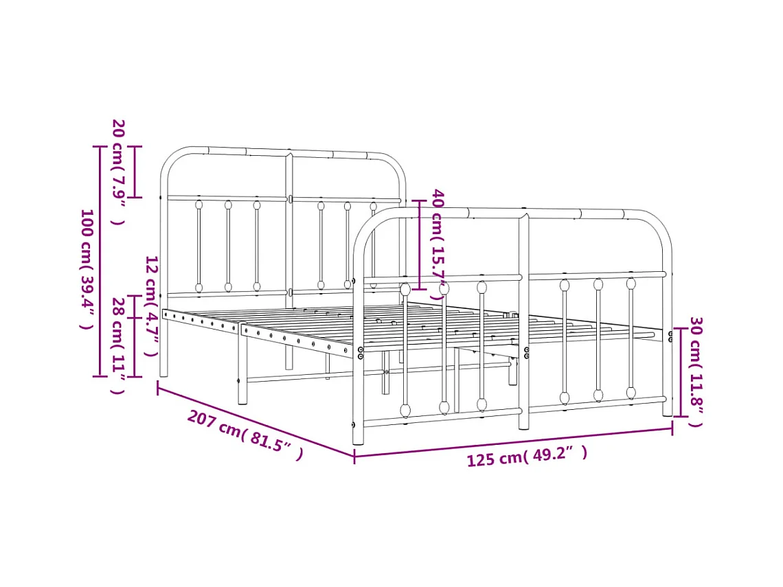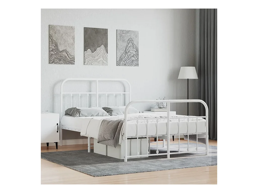 Cadre de lit métal avec tête de lit-pied de lit blanc 120x200