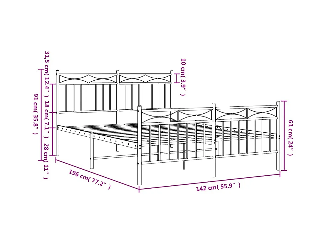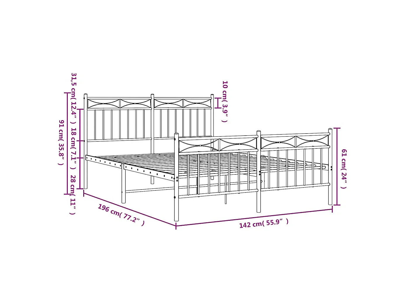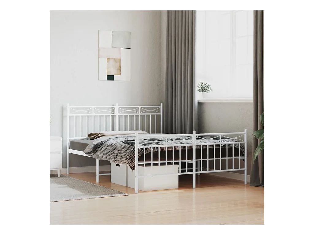 Cadre de lit métal avec tête de lit-pied de lit blanc 135x190