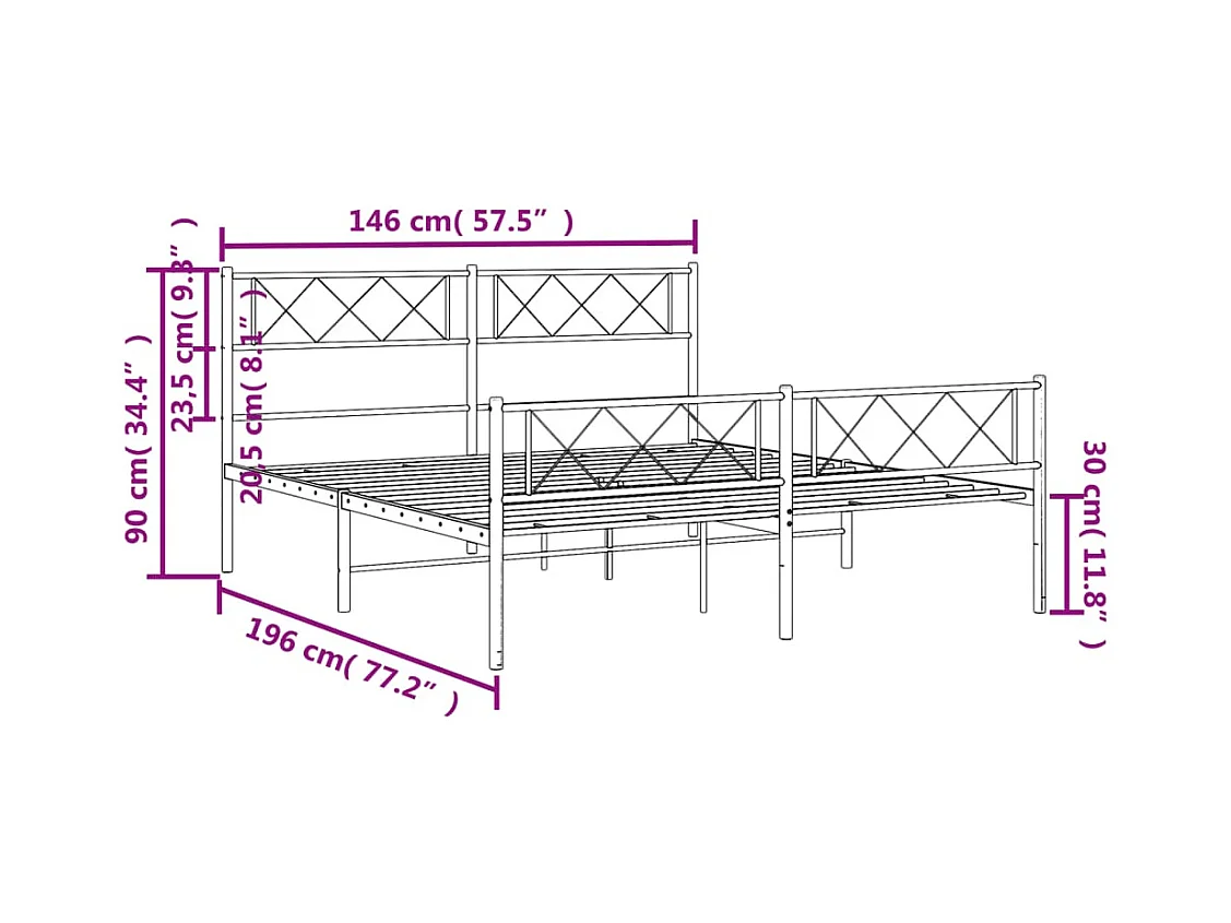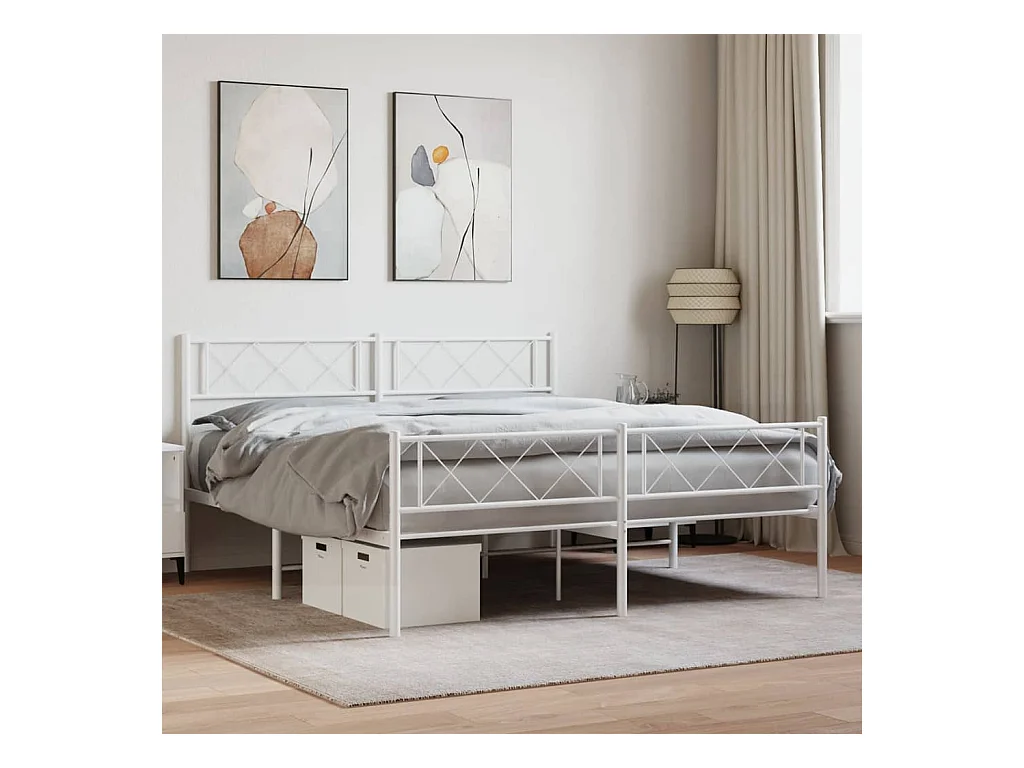 Cadre de lit métal avec tête de lit-pied de lit blanc 140x190