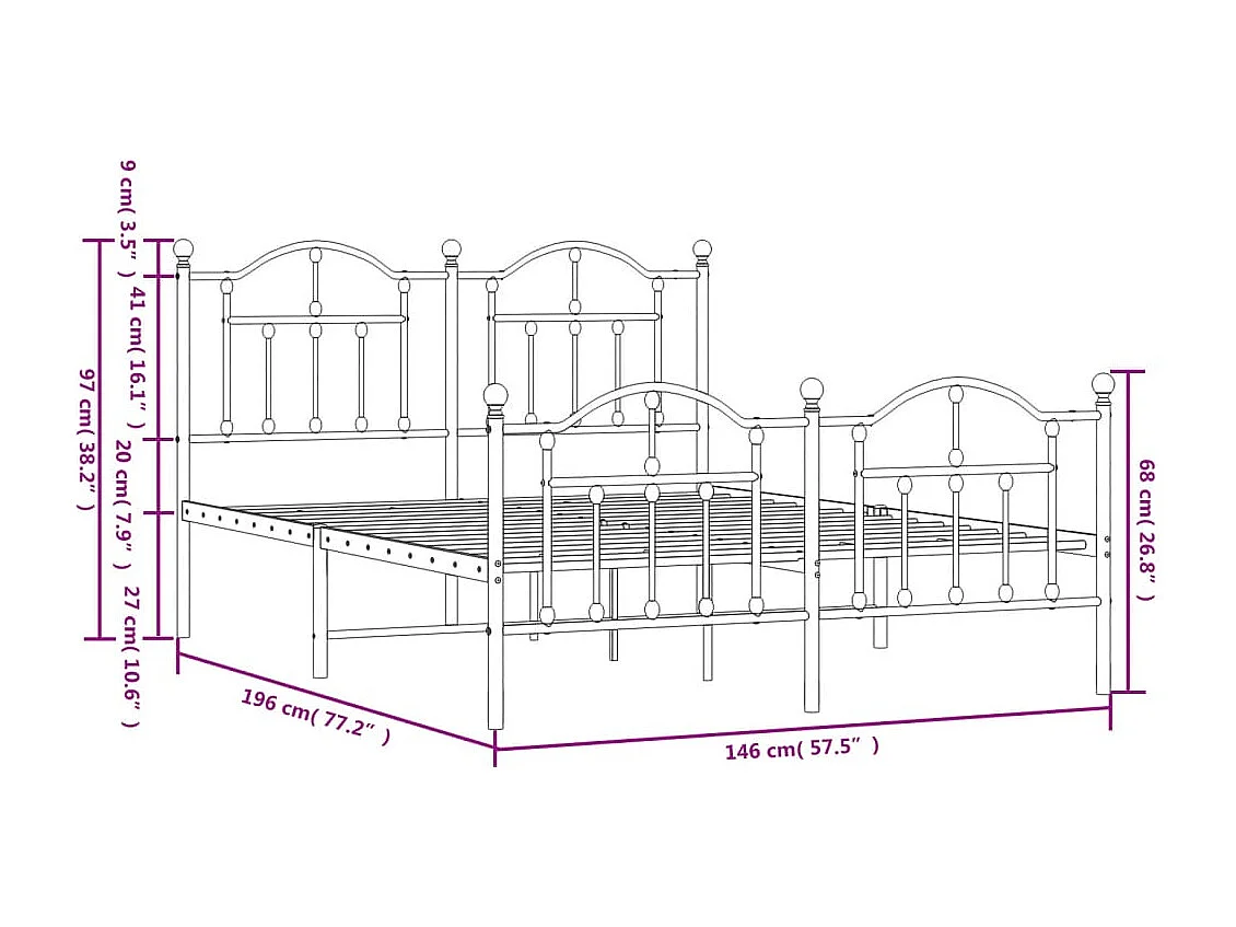 Cadre de lit métal avec tête de lit/pied de lit blanc 140x190cm