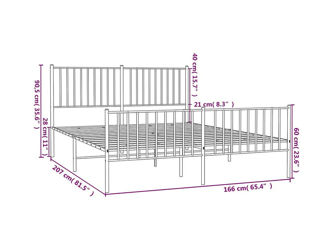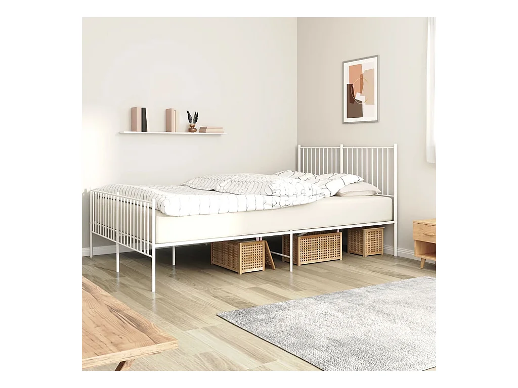 Cadre de lit métal avec tête de lit-pied de lit blanc 160x200