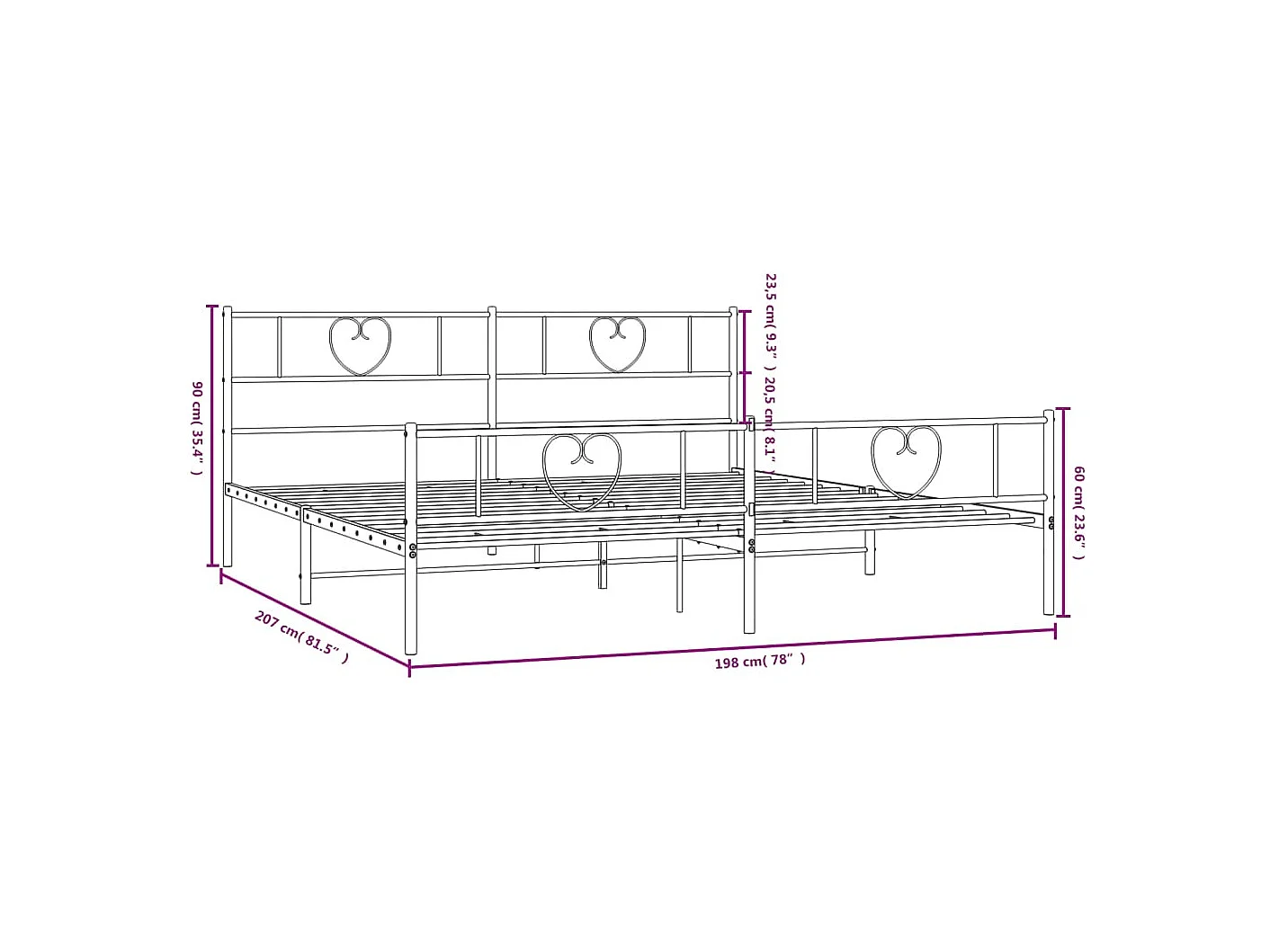 Cadre de lit métal avec tête de lit-pied de lit blanc 193x203