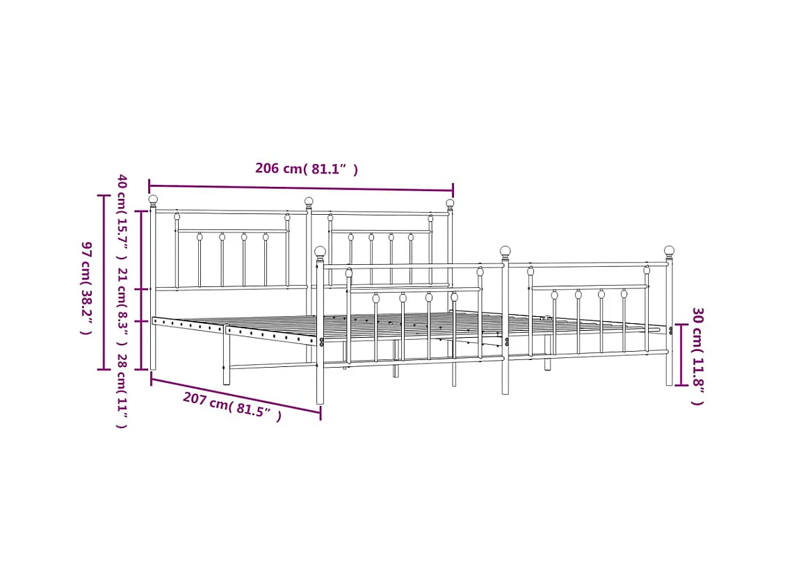 Cadre de lit métal avec tête de lit-pied de lit blanc 200x200