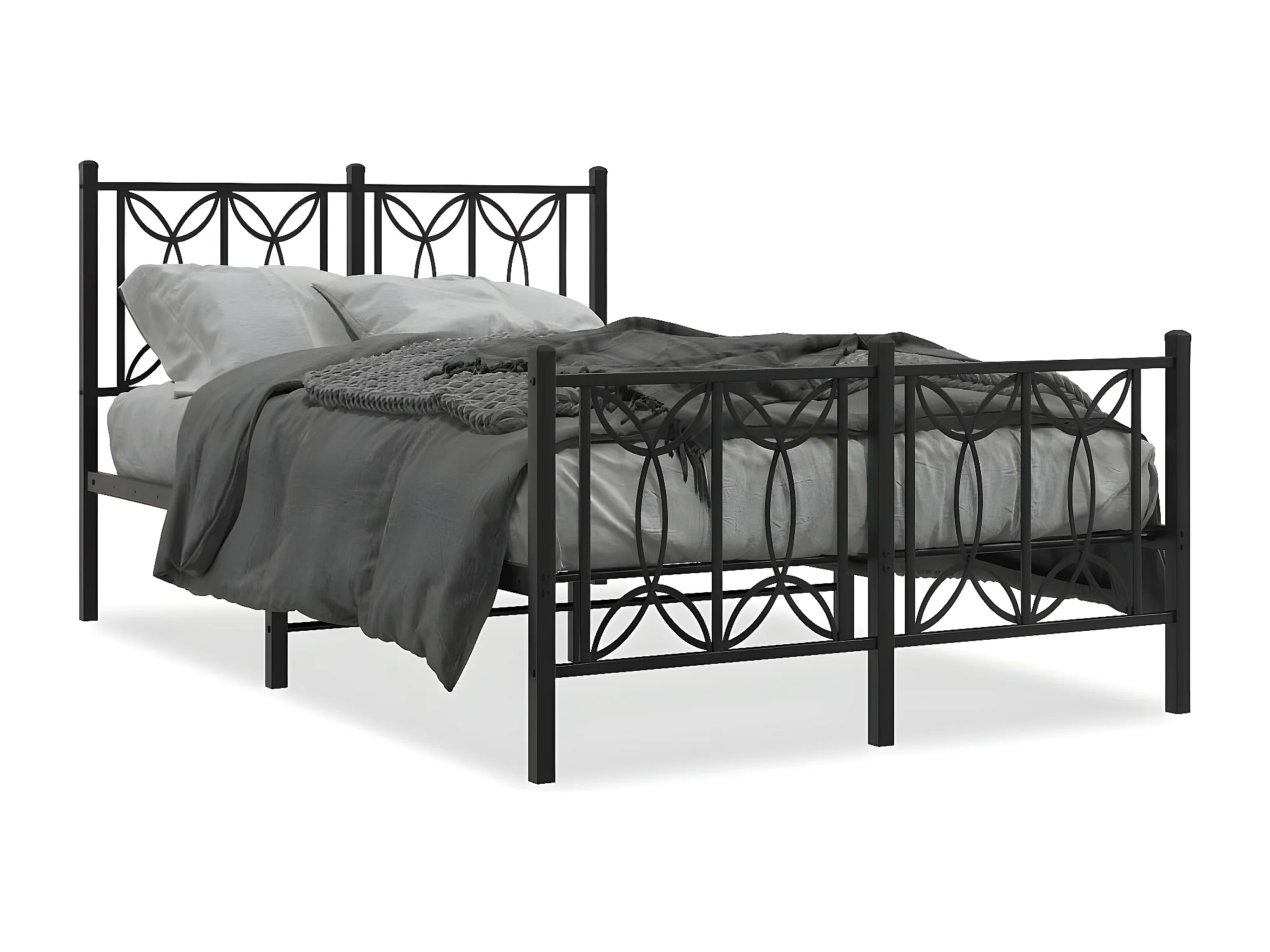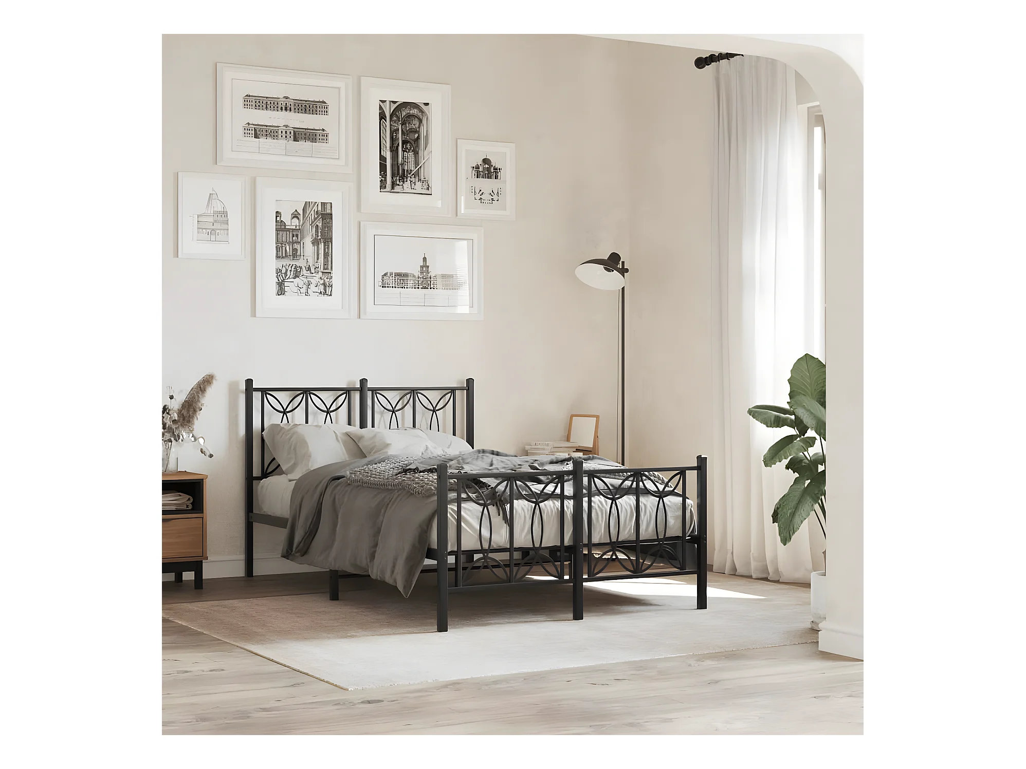Cadre de lit métal avec tête de lit/pied de lit noir 120x190 cm