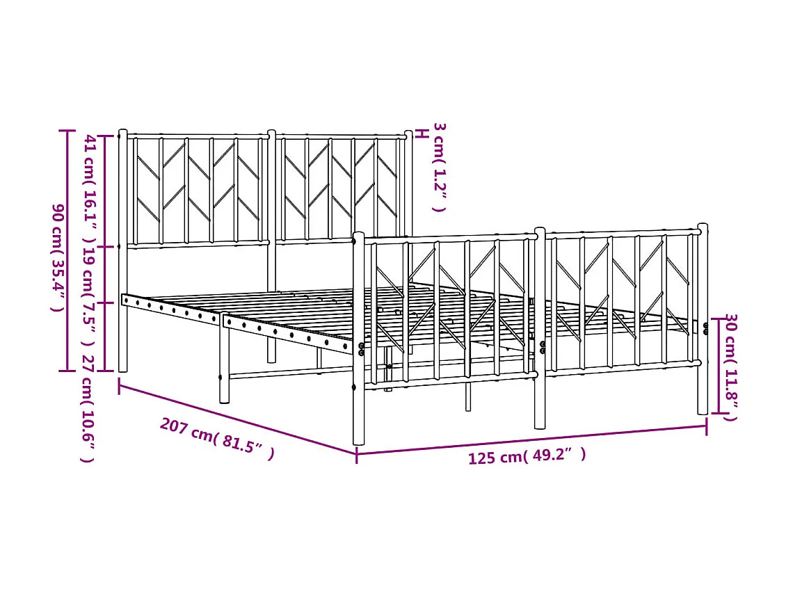 Cadre de lit métal avec tête de lit-pied de lit noir 120x200