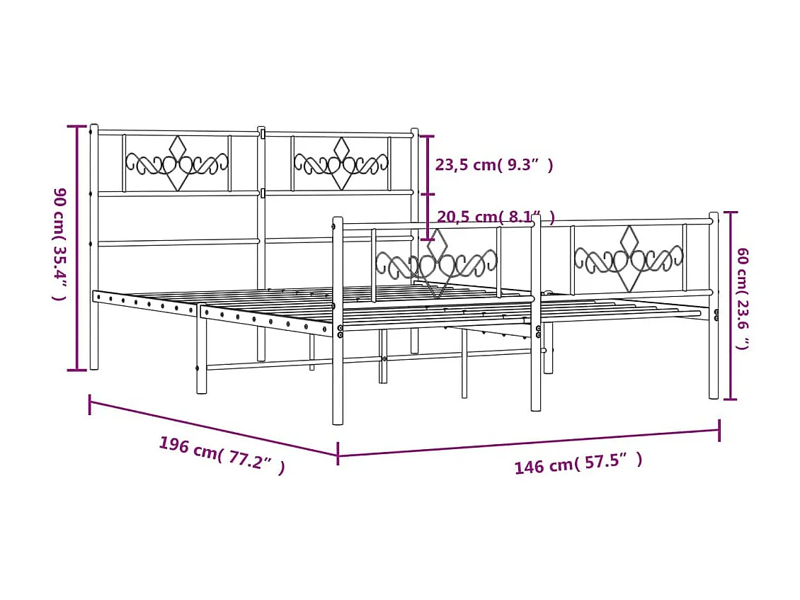 Cadre de lit métal avec tête de lit-pied de lit noir 140x190