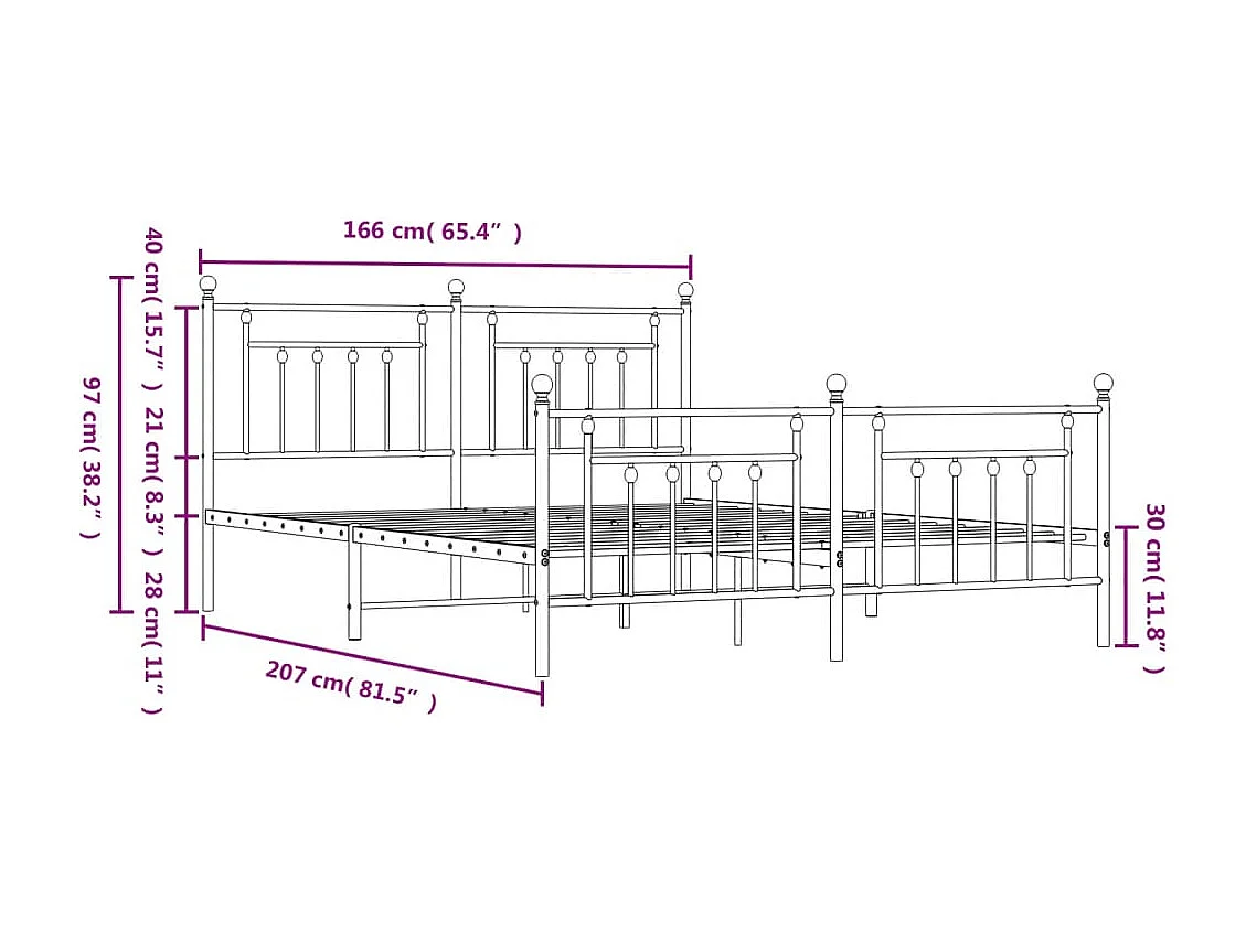 Cadre de lit métal avec tête de lit-pied de lit noir 160x200