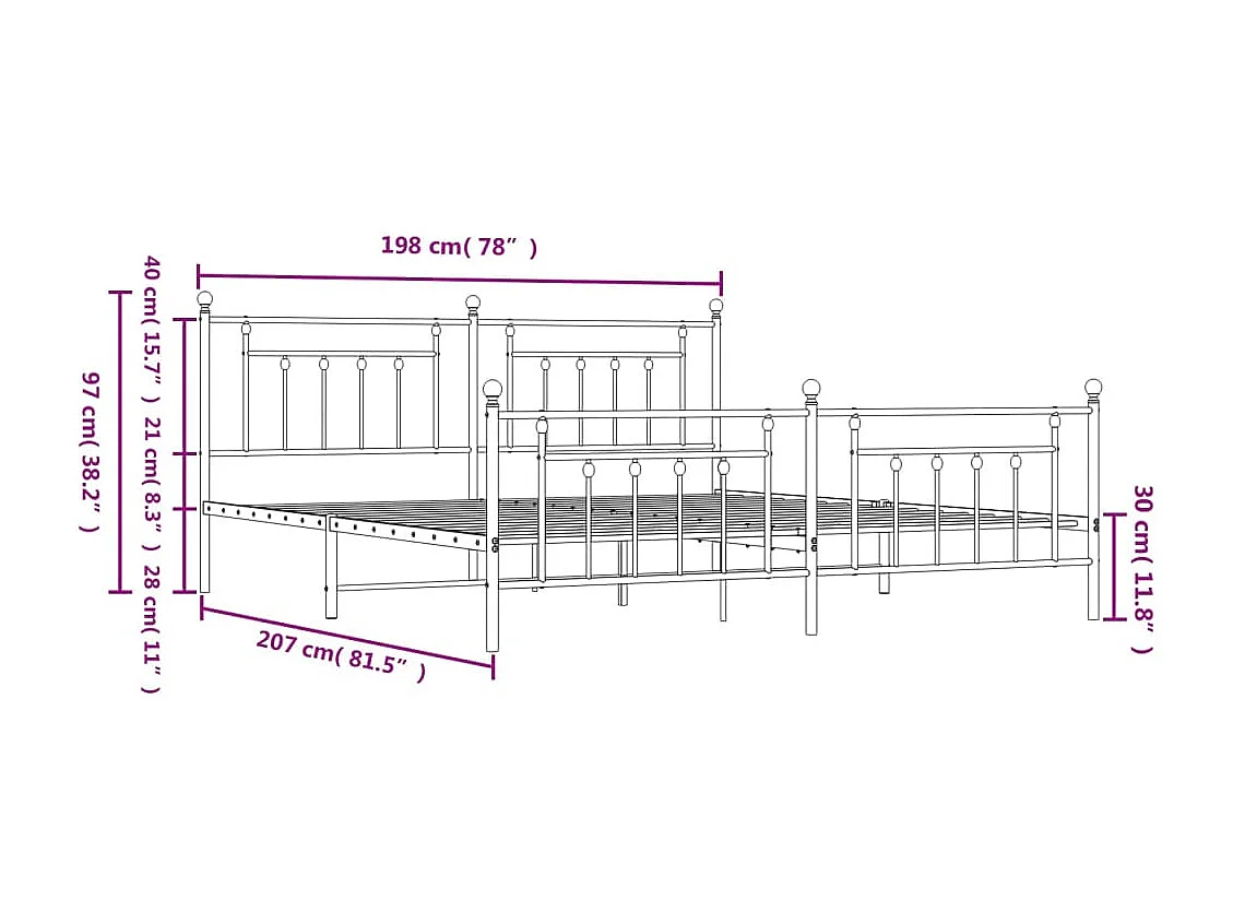 Cadre de lit métal avec tête de lit-pied de lit noir 193x203