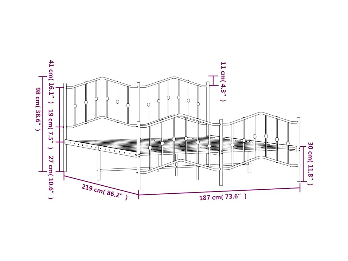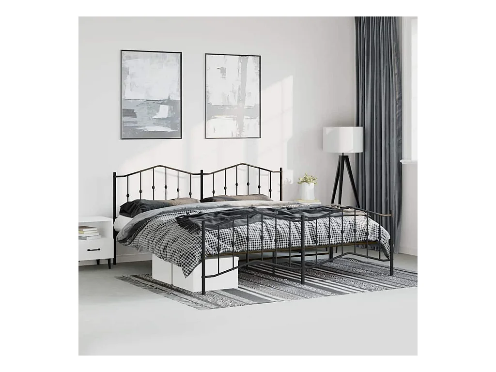 Cadre de lit métal sans matelas avec pied de lit noir 183x213cm