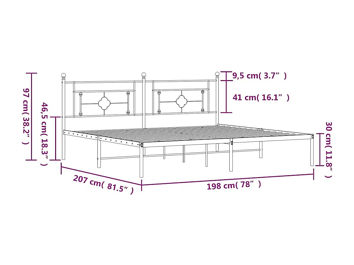 Cadre de lit métal sans matelas avec tête de lit noir 193x203cm