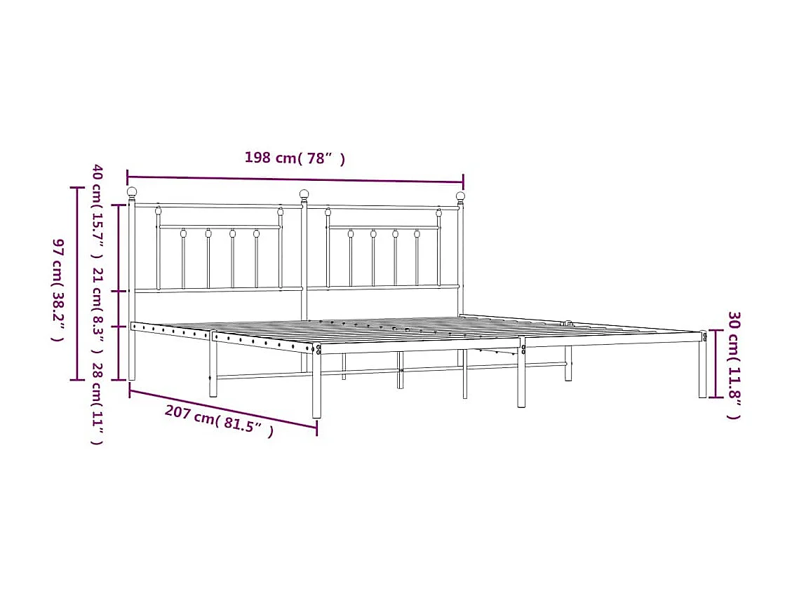 Cadre de lit métal sans matelas avec tête de lit noir 193x203cm