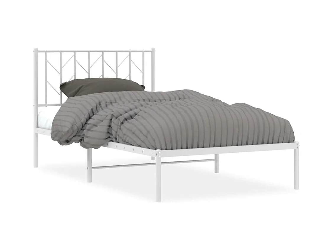Cadre de lit métal sans matelas et tête de lit blanc 100x190 cm