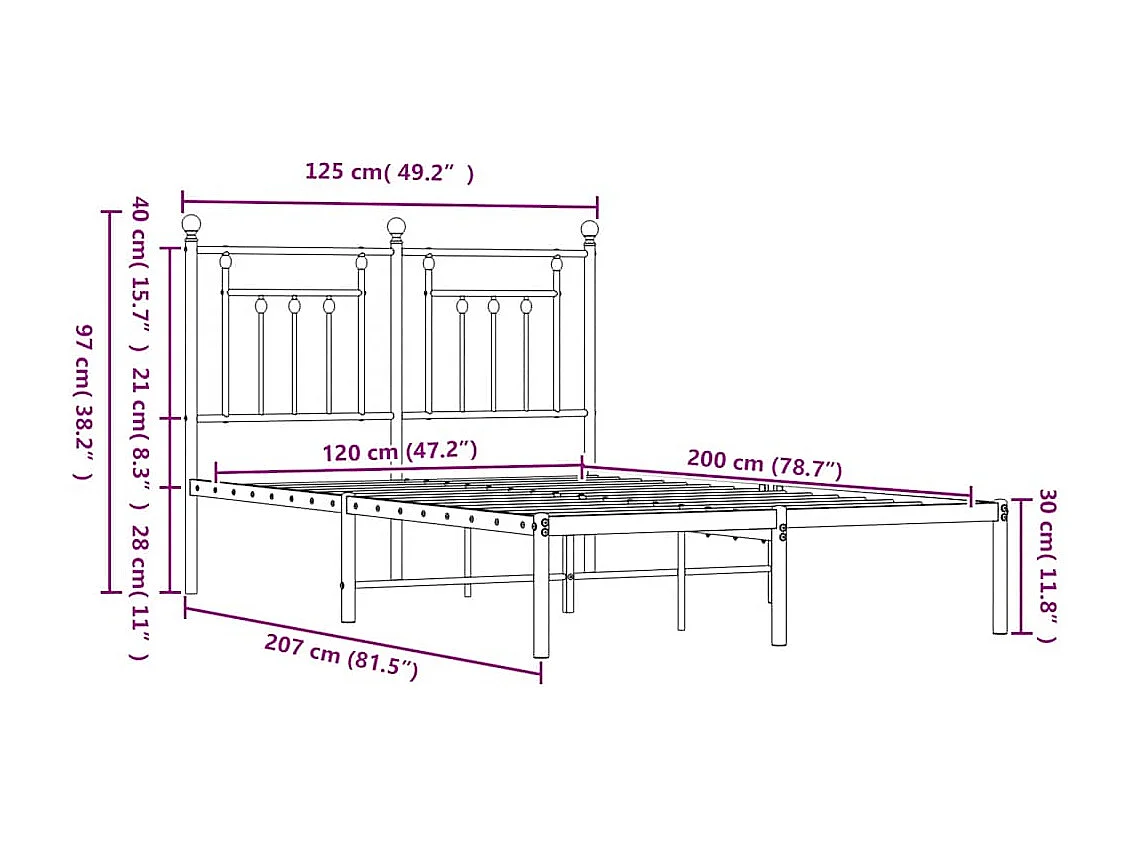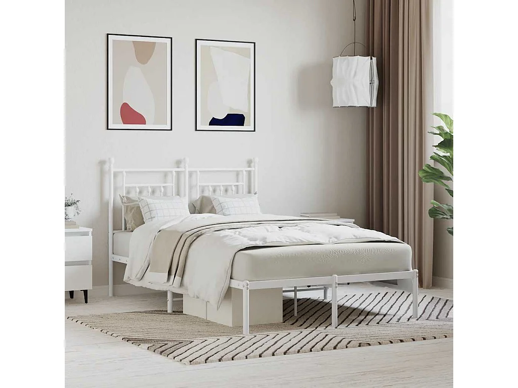 Cadre de lit métal sans matelas et tête de lit blanc 120x200 cm