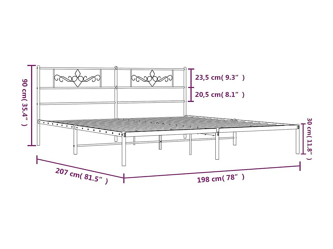 Cadre de lit métal sans matelas et tête de lit blanc 193x203 cm