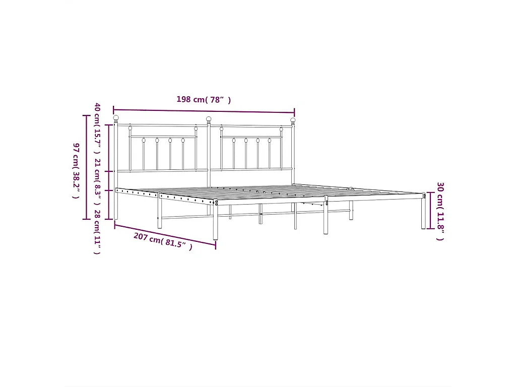 Cadre de lit métal sans matelas et tête de lit blanc 193x203 cm