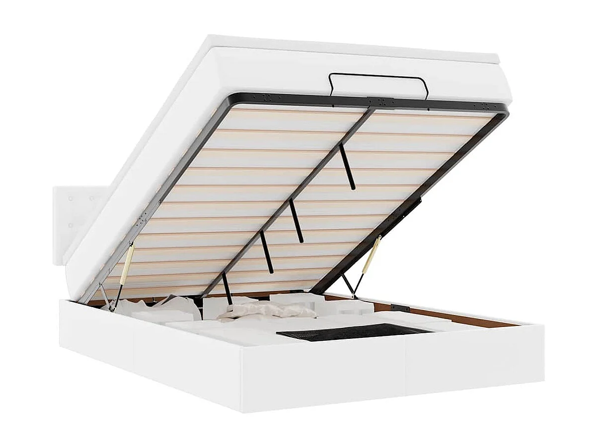 Cadre de lit ottoman avec matelas blanc 140x190 cm similicuir