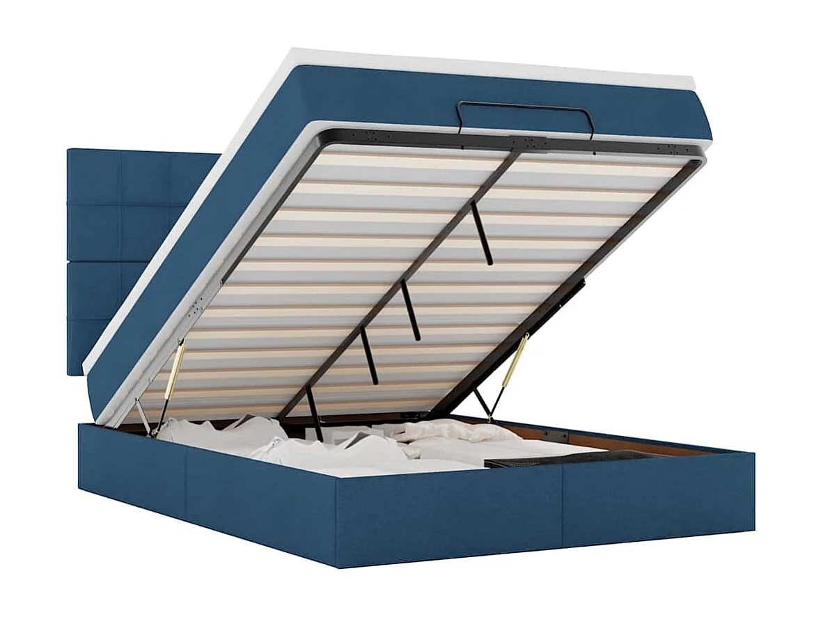 Cadre de lit ottoman avec matelas bleu 140x190 cm tissu