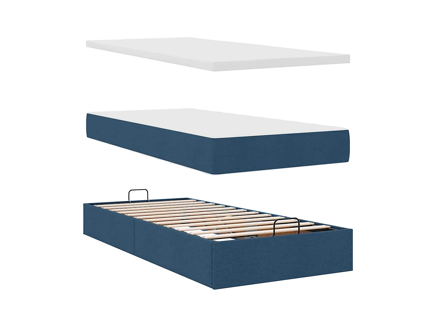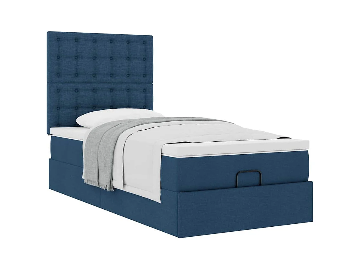 Cadre de lit ottoman avec matelas bleu 80x200 cm tissu
