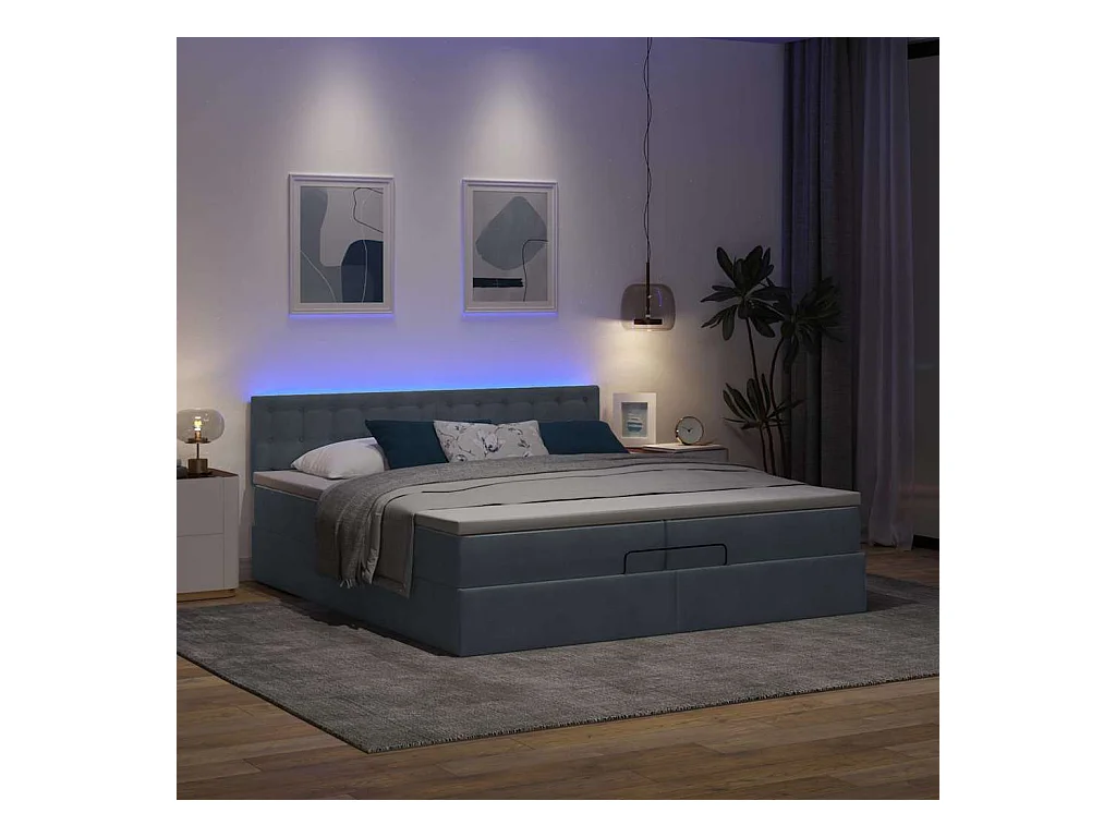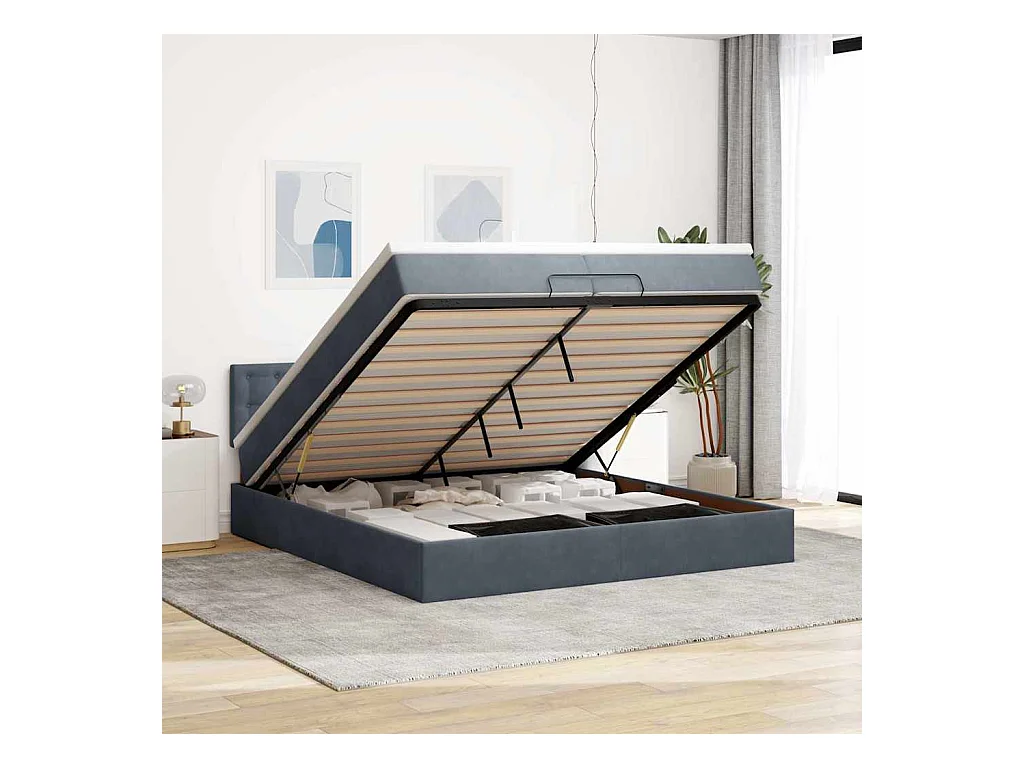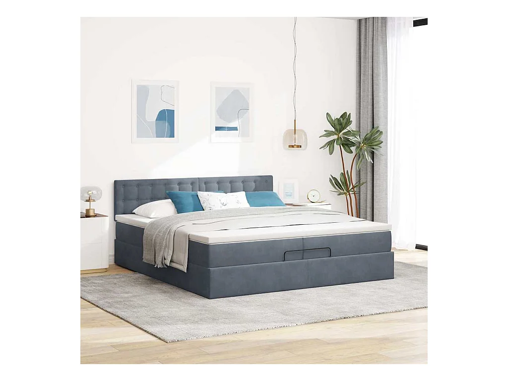 Cadre de lit ottoman avec matelas gris foncé 200x200 cm velours