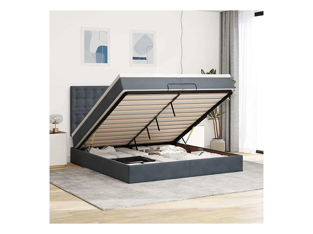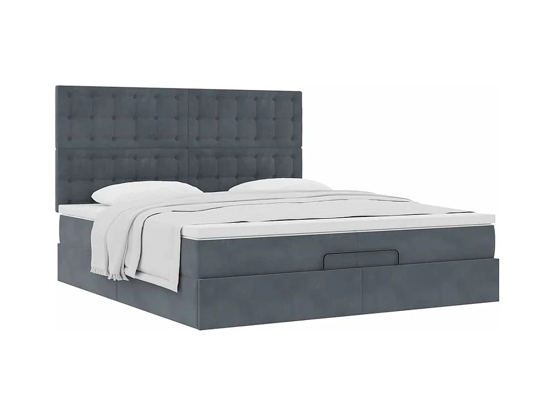 Cadre de lit ottoman avec matelas gris foncé 200x200 cm velours
