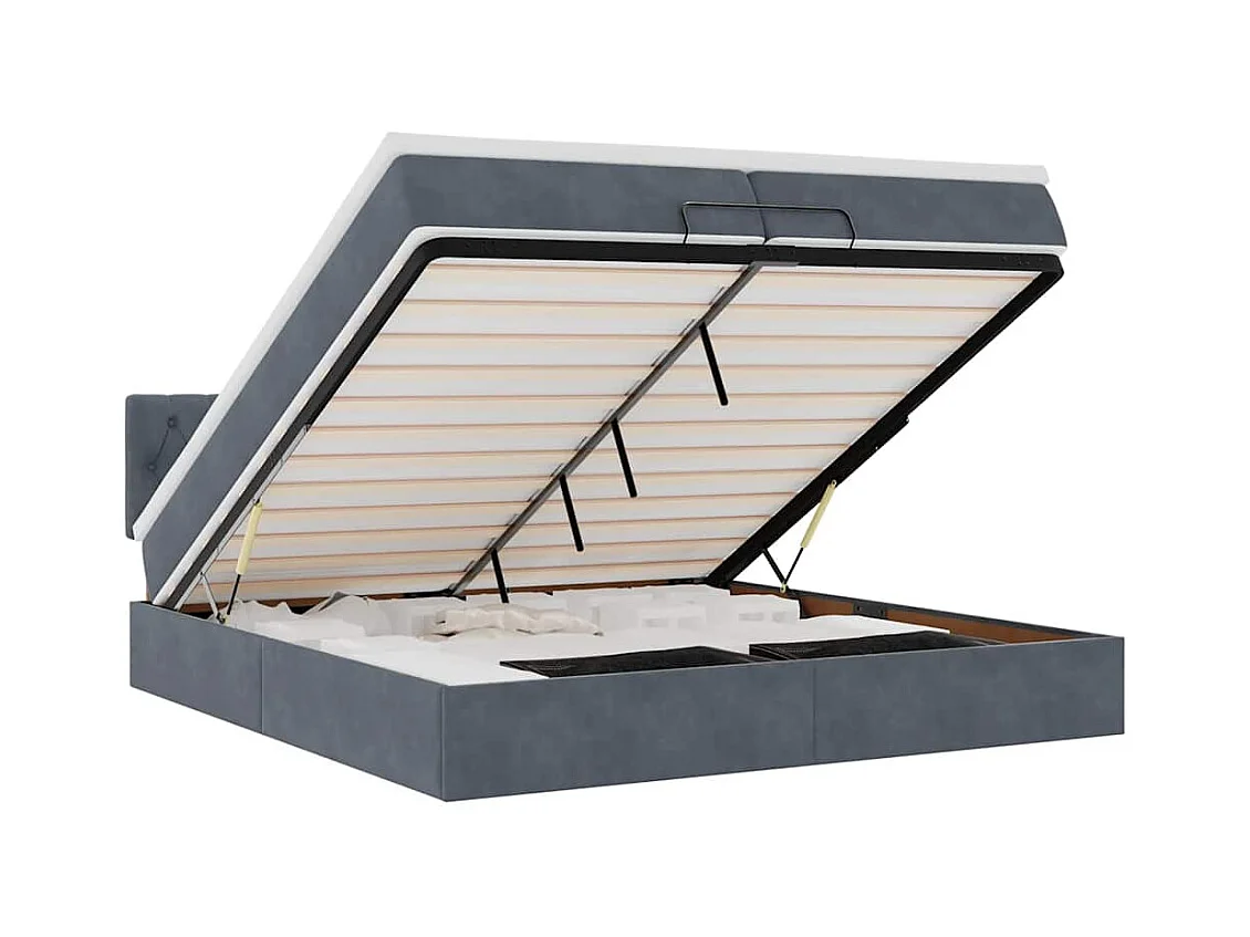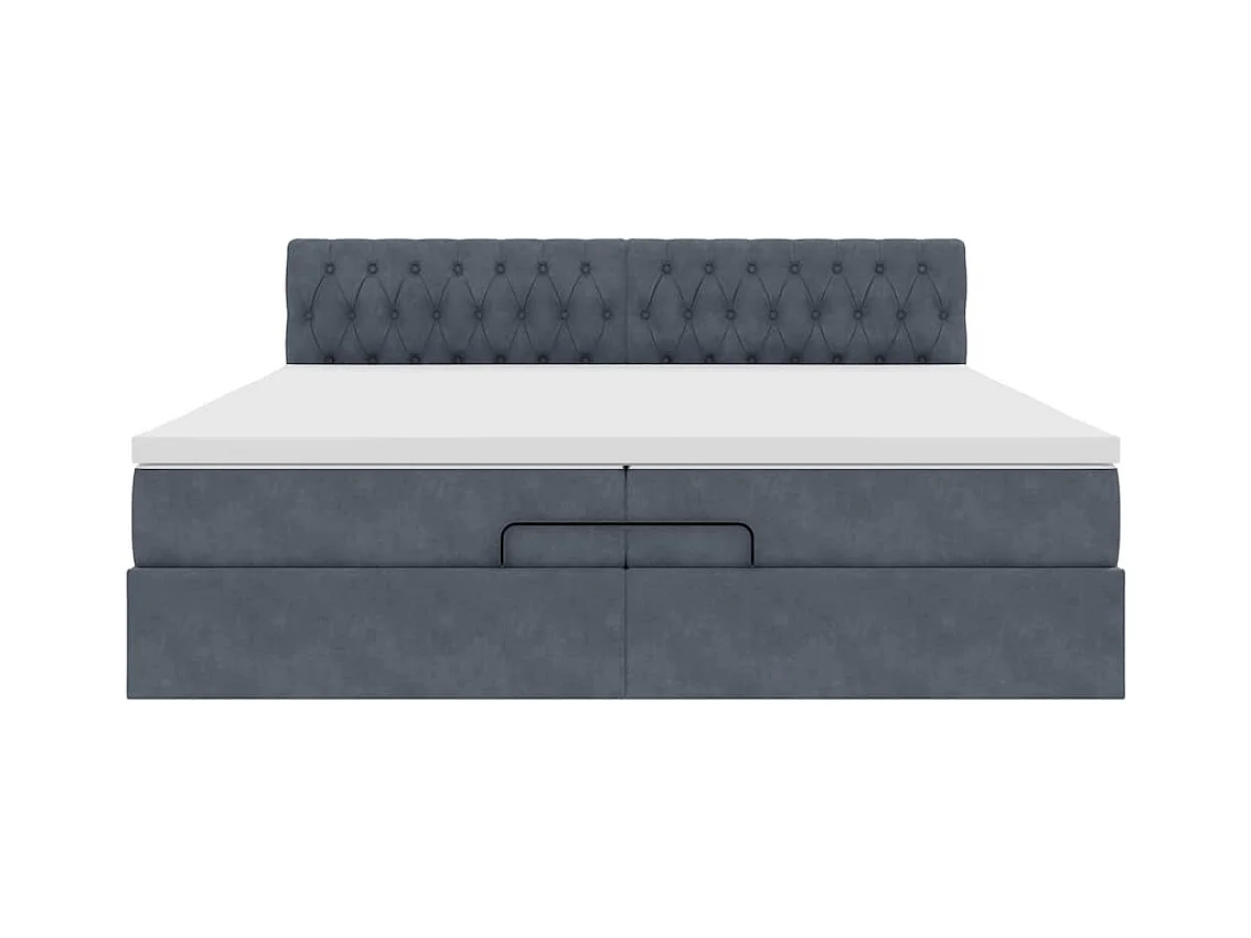 Cadre de lit ottoman avec matelas gris foncé 200x200 cm velours