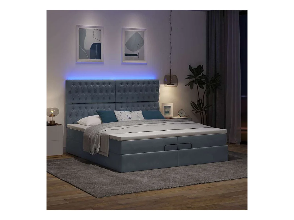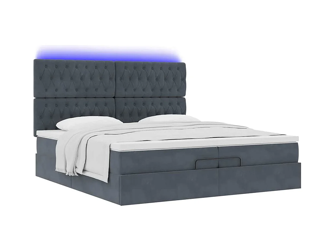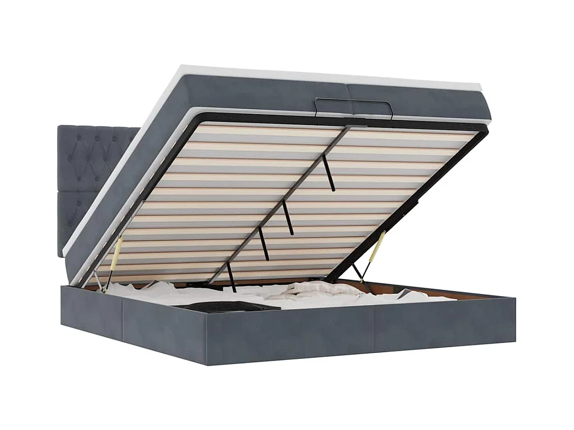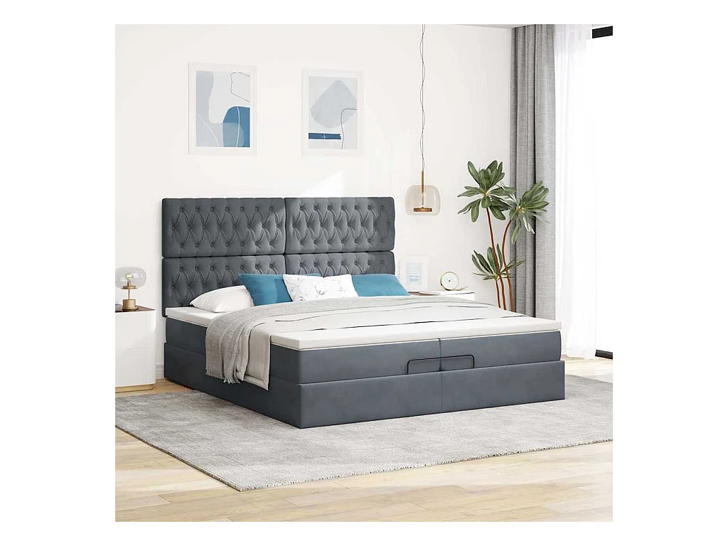 Cadre de lit ottoman avec matelas gris foncé 200x200 cm velours
