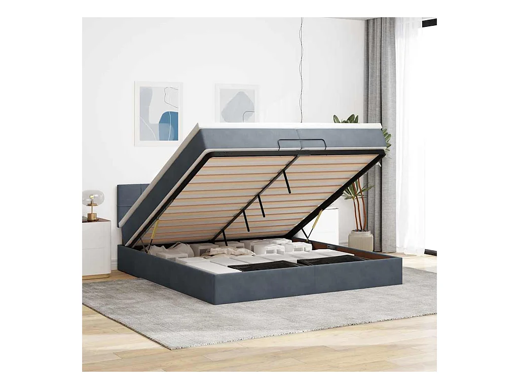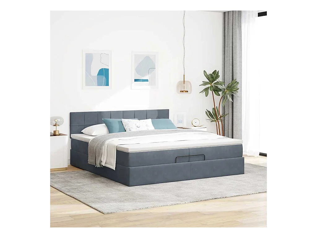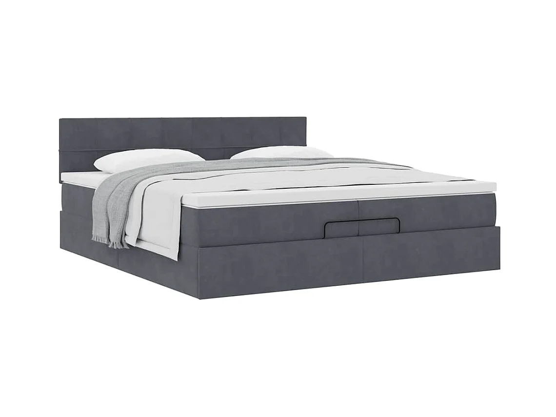 Cadre de lit ottoman avec matelas gris foncé 200x200 cm velours