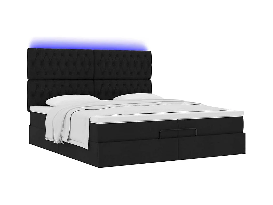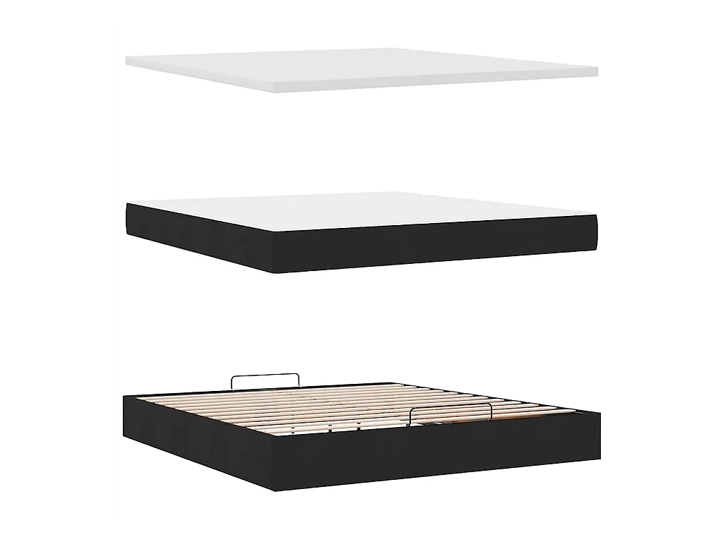 Cadre de lit ottoman avec matelas noir 200x200cm tissu