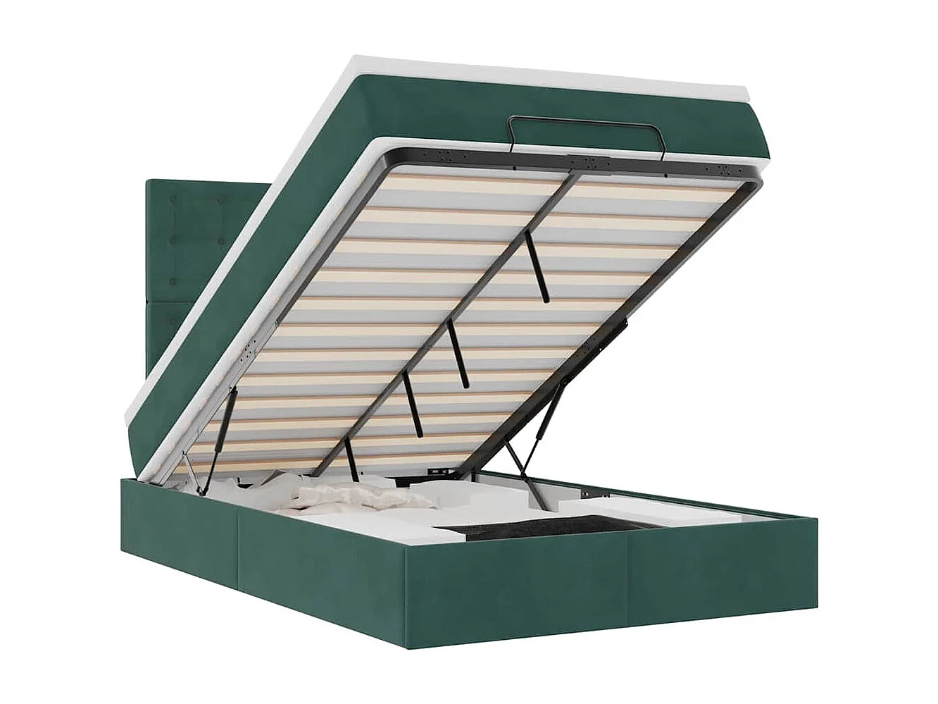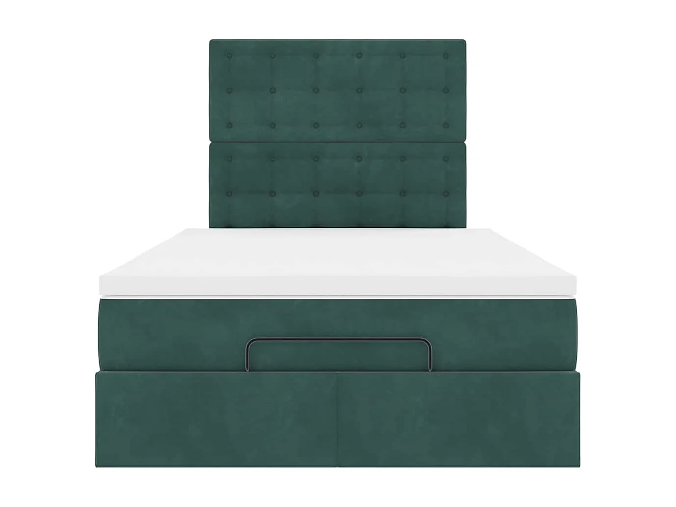 Cadre de lit ottoman avec matelas vert foncé 120x200 cm velours