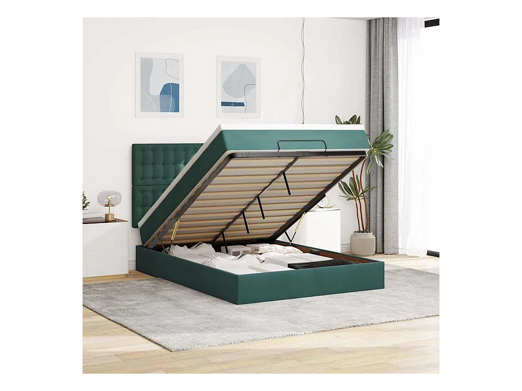 Cadre de lit ottoman avec matelas vert foncé 140x190 cm velours