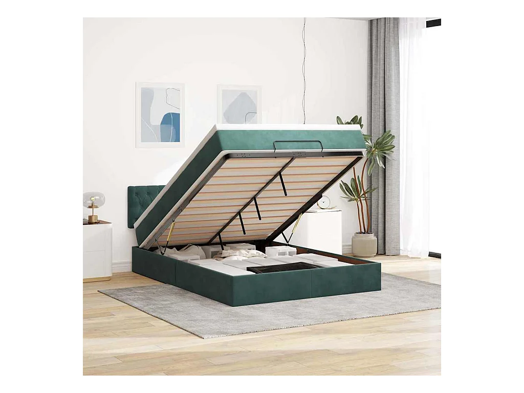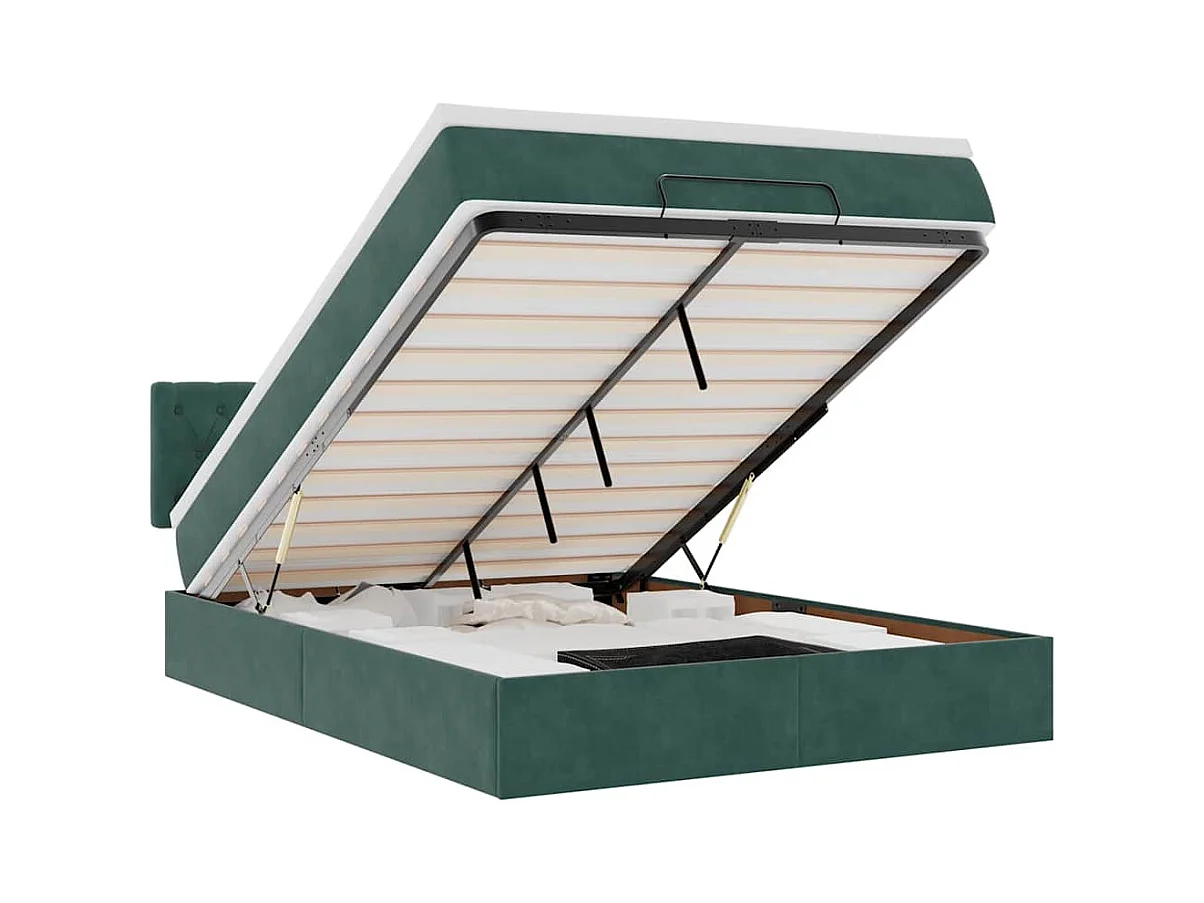 Cadre de lit ottoman avec matelas vert foncé 140x190 cm velours
