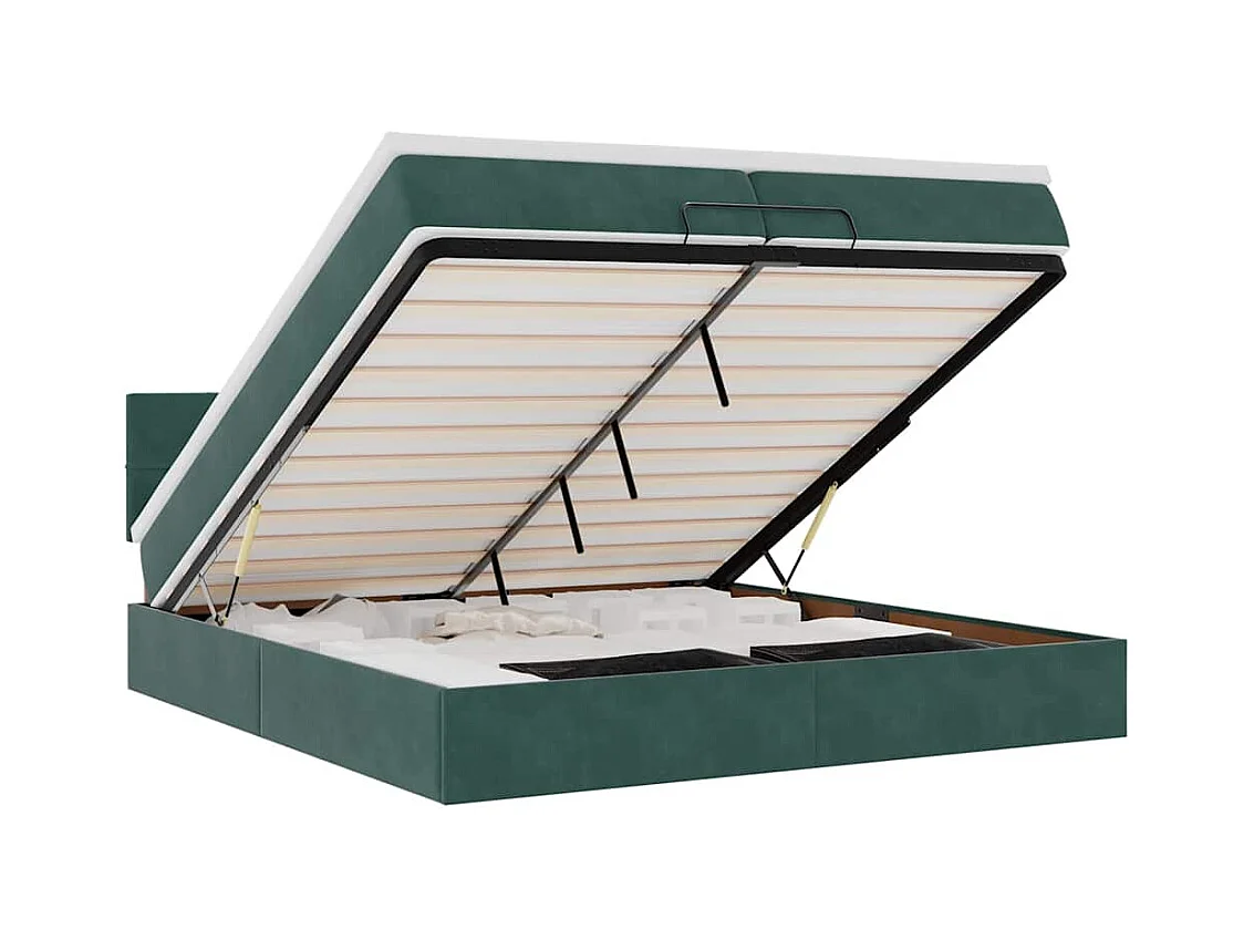 Cadre de lit ottoman avec matelas vert foncé 200x200 cm velours