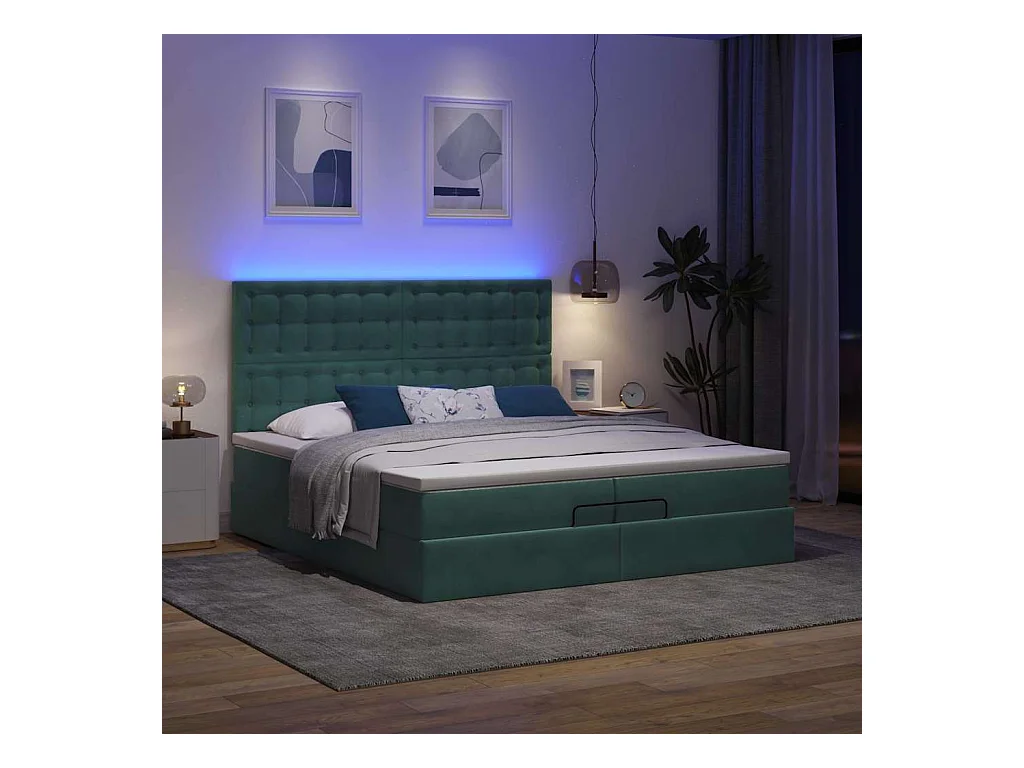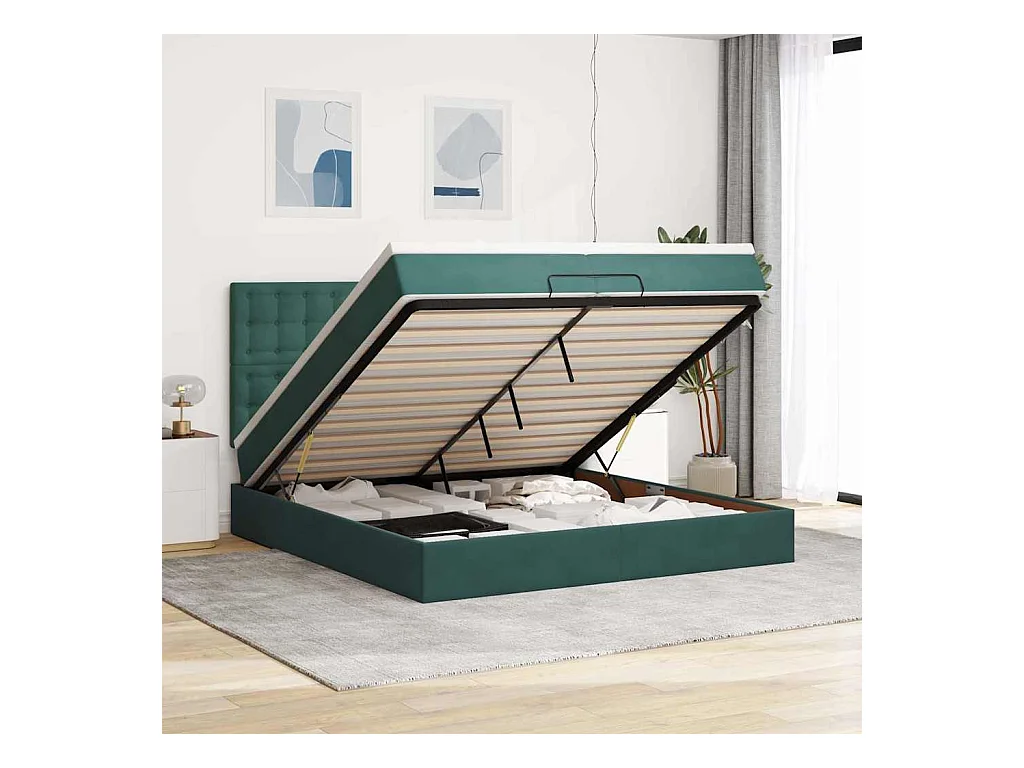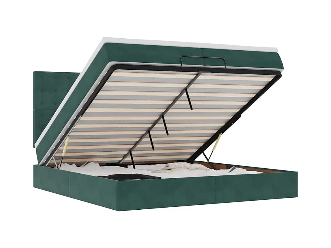 Cadre de lit ottoman avec matelas vert foncé 200x200 cm velours