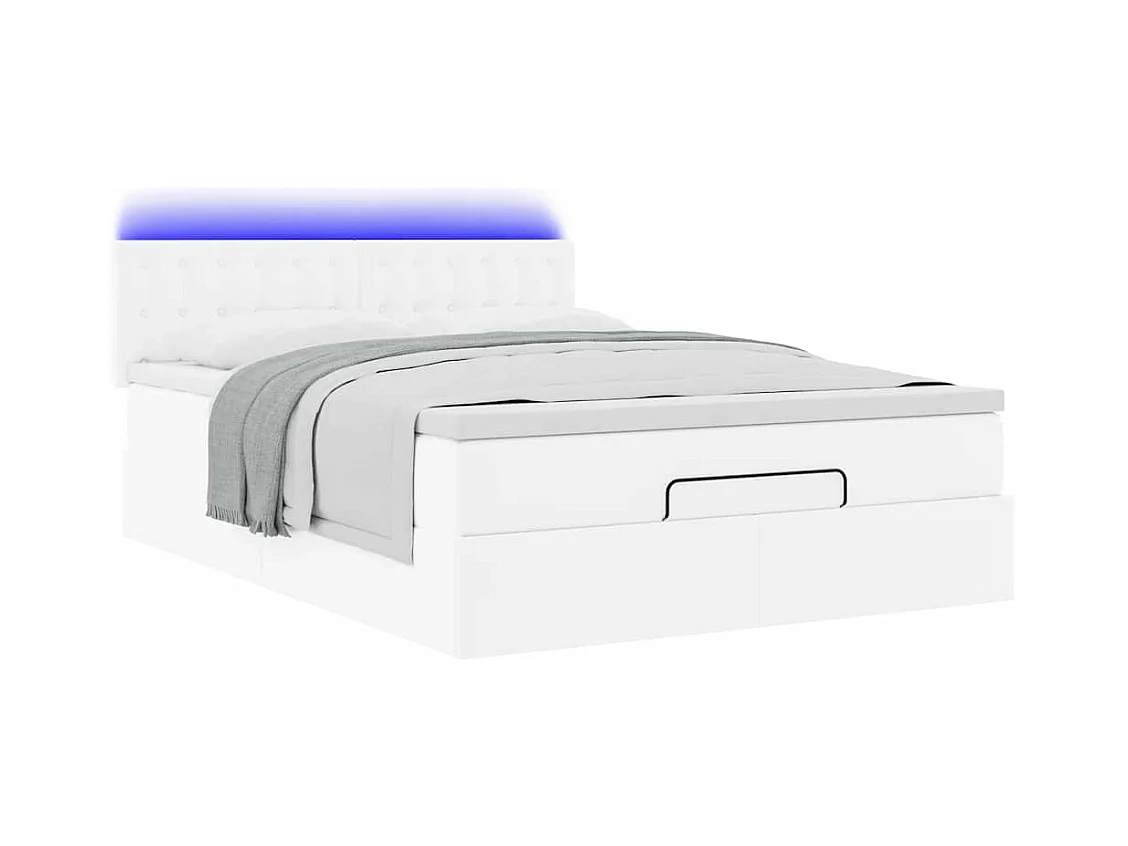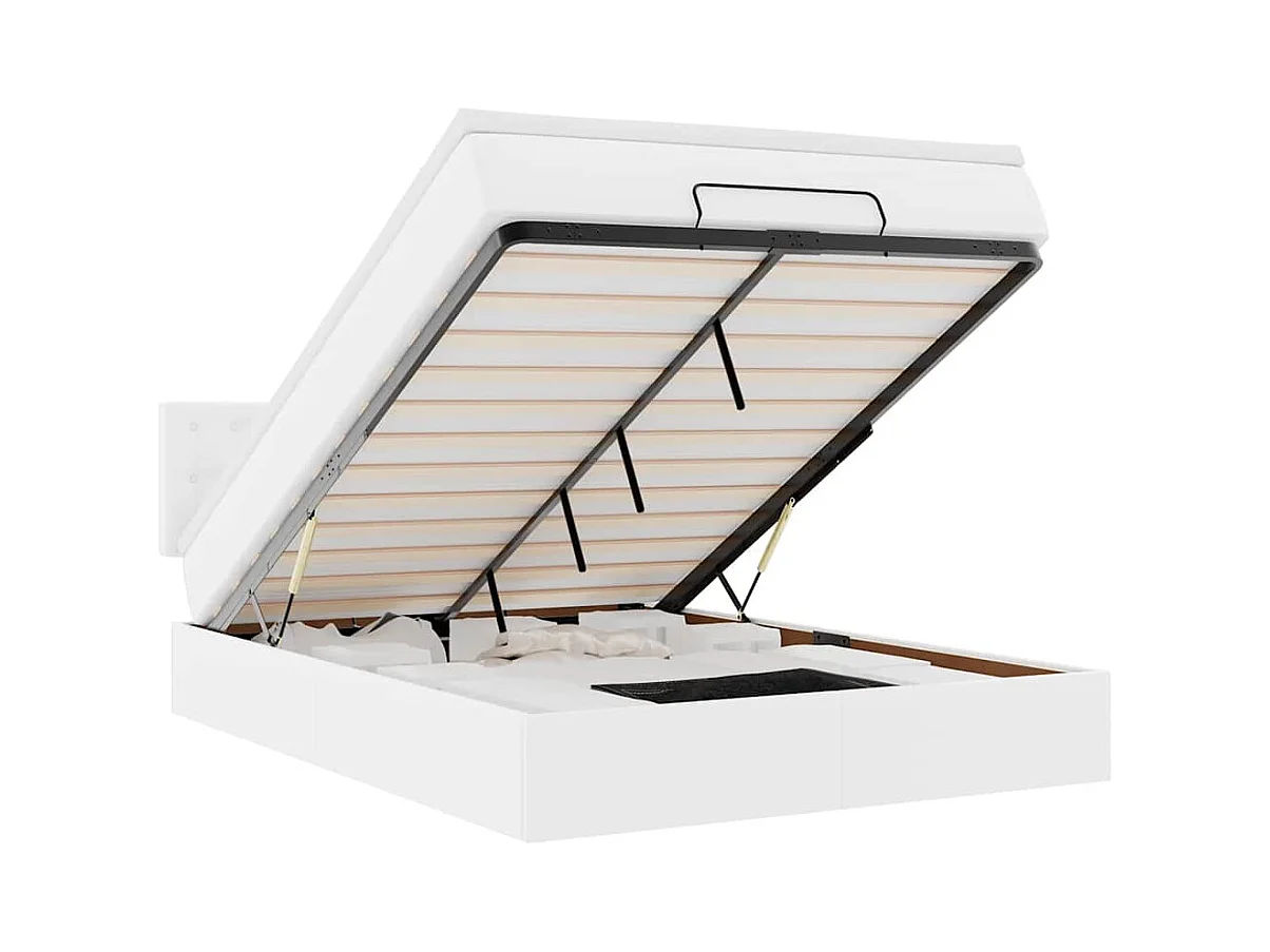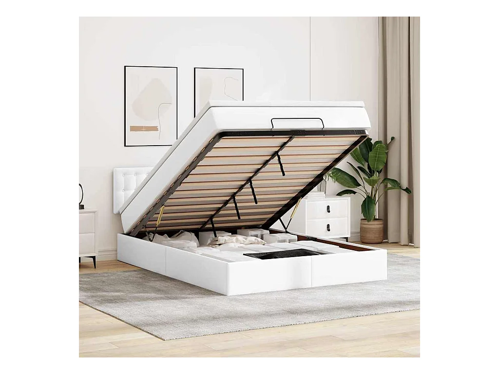 Cadre de lit ottoman et matelas blanc pur 140x190 cm similicuir