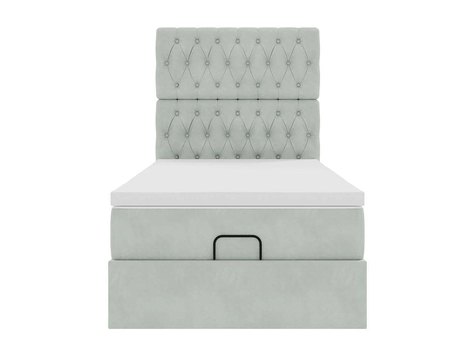 Cadre de lit ottoman et matelas gris clair 90x190 cm velours