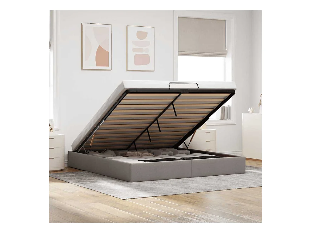 Cadre de lit ottoman sans matelas taupe 200x200 cm tissu