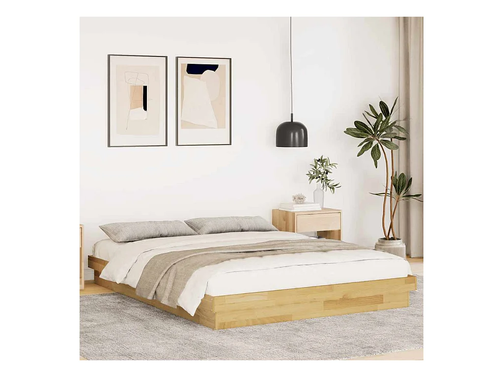 Cadre de lit sans matelas 140x190 cm bois massif de chêne