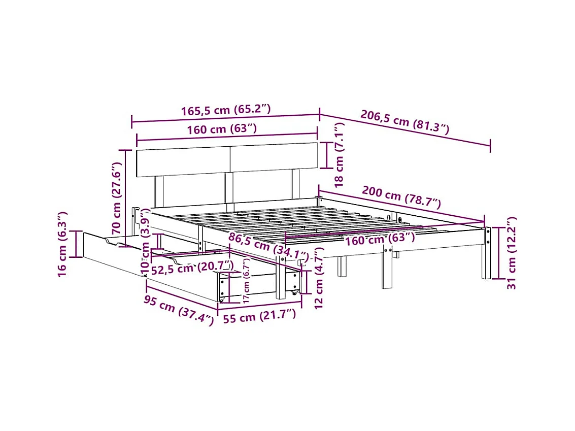 Cadre de lit sans matelas 160x200 cm bois massif de pin