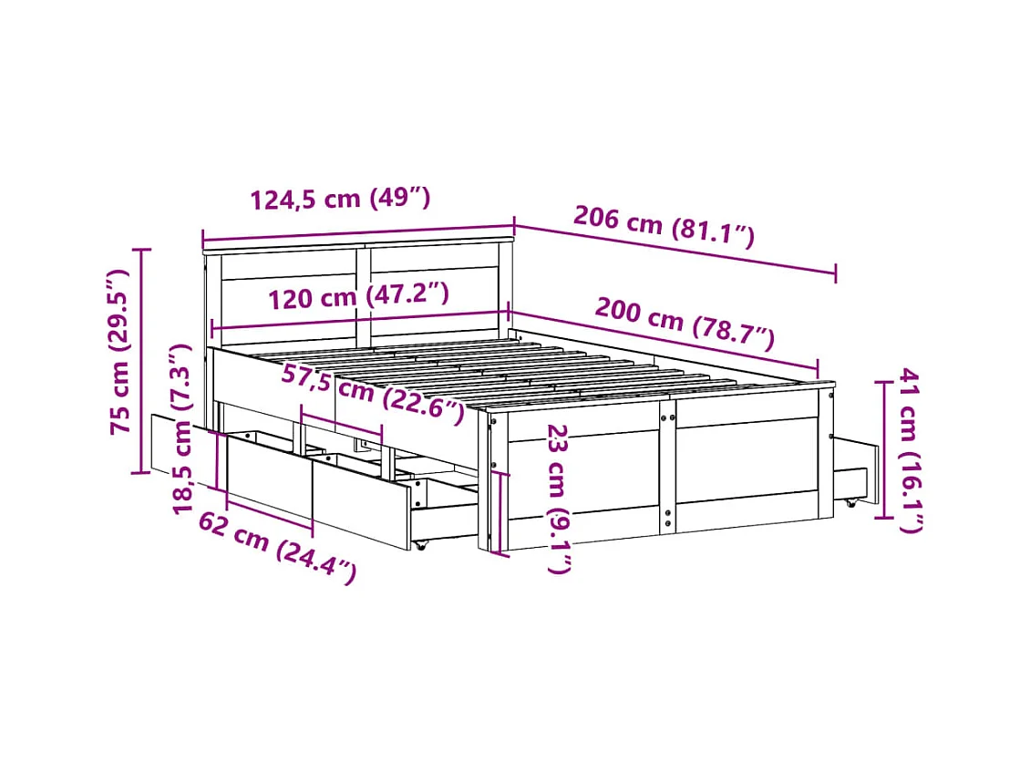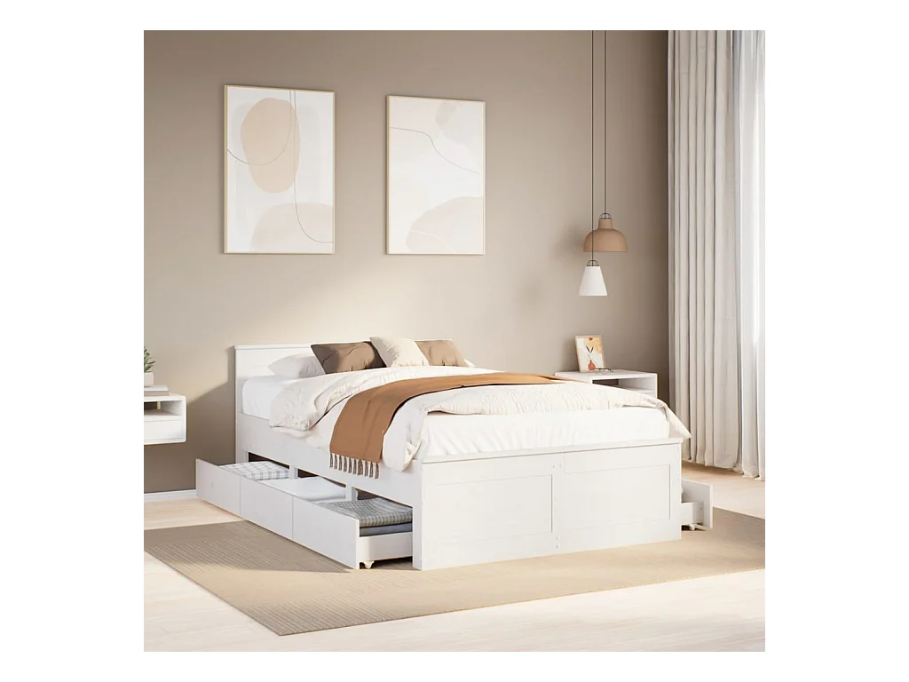 Cadre de lit sans matelas avec tête de lit blanc 120x200 cm pin