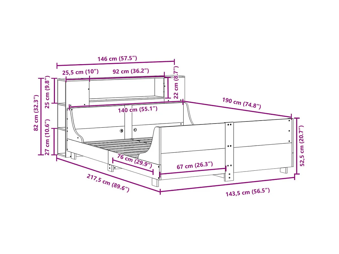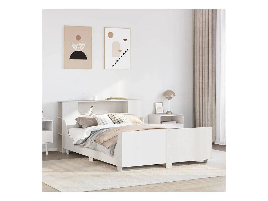 Cadre de lit sans matelas blanc 140x190 cm bois de pin massif