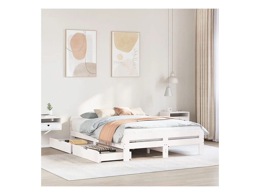Cadre de lit sans matelas blanc 160x200 cm bois de pin massif