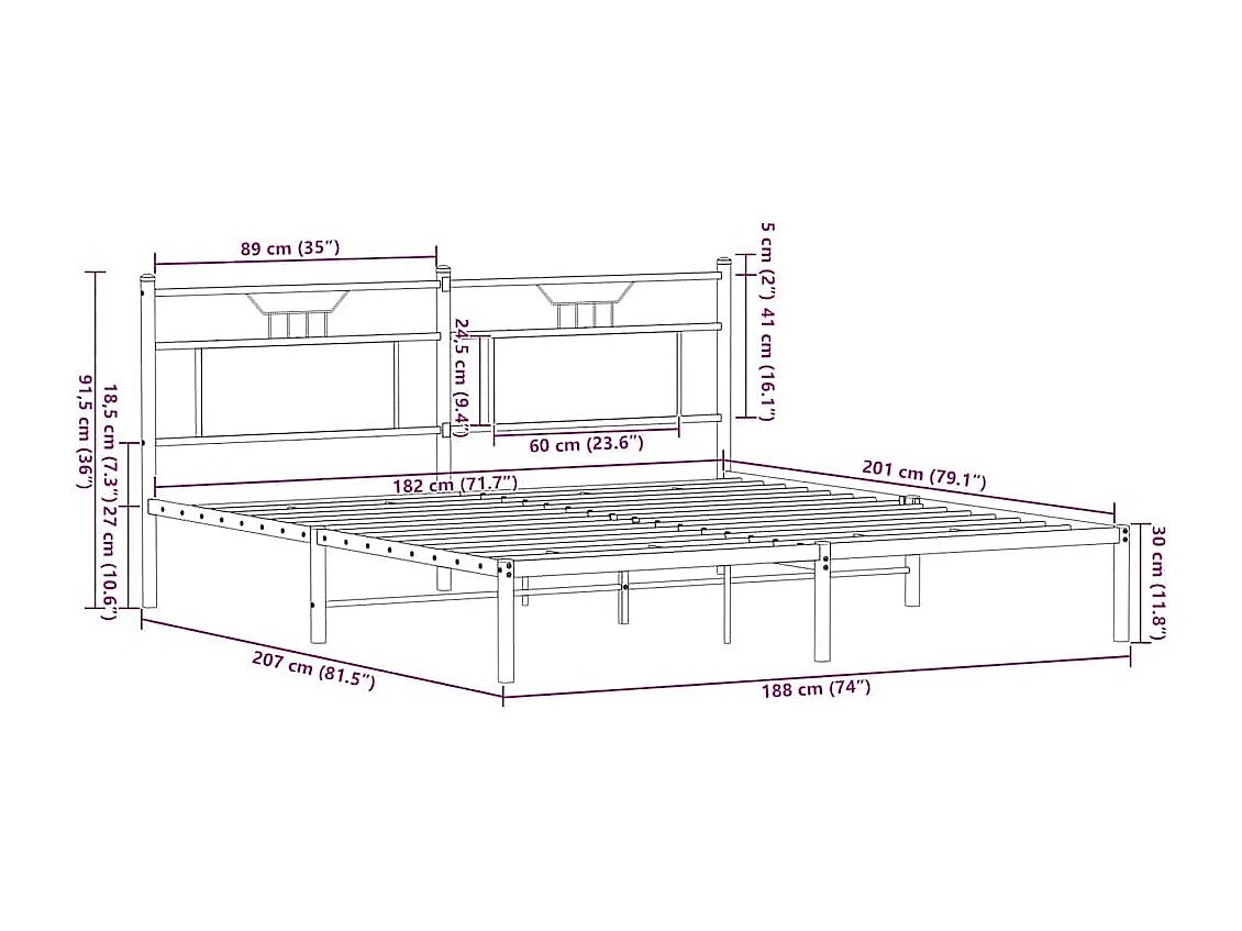 Cadre de lit sans matelas chêne sonoma 183x203 cm